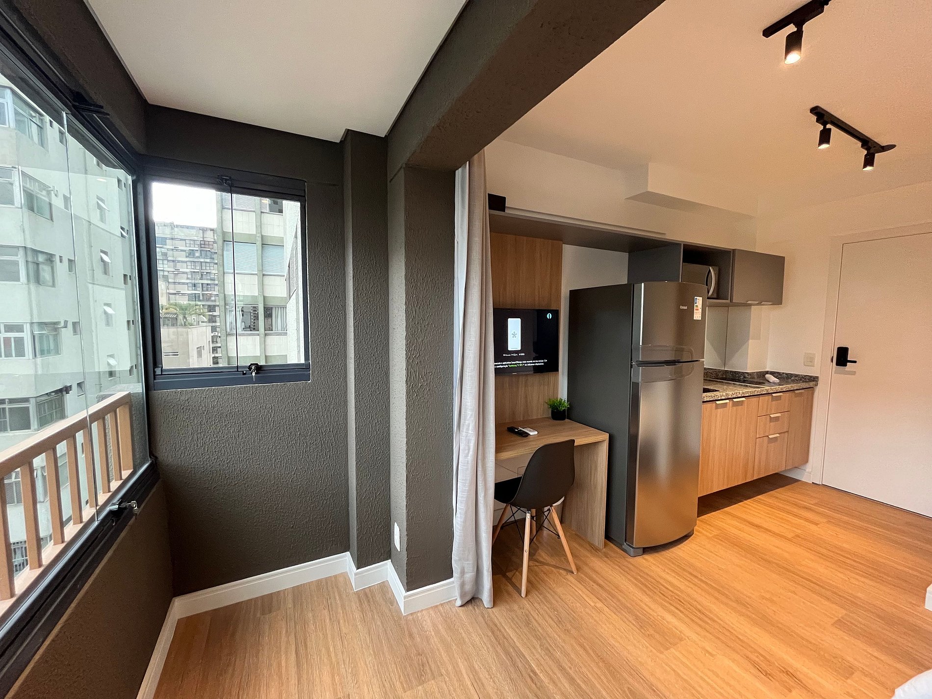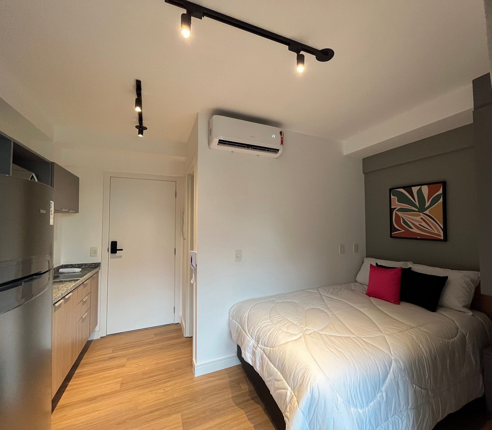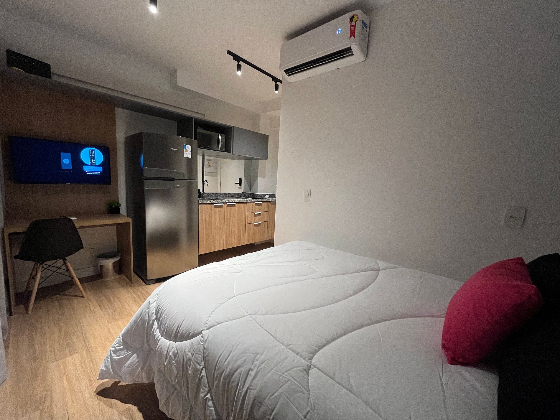 Nós entendemos o que você precisa. Por isso, ao escolher o Housi, você opta por uma experiência de moradia sem complicações. Tudo pronto, desde o check in até serviços adicionais a um toque no nosso aplicativo. Nossos espaços são contemporâneos e práticos, oferecendo tudo o que você precisa para uma estadia confortável: Wi-Fi, TV a cabo, toalhas, roupa de cama completa e uma cozinha compacta equipada com geladeira, cooktop de indução de uma boca, micro-ondas e utensílios.