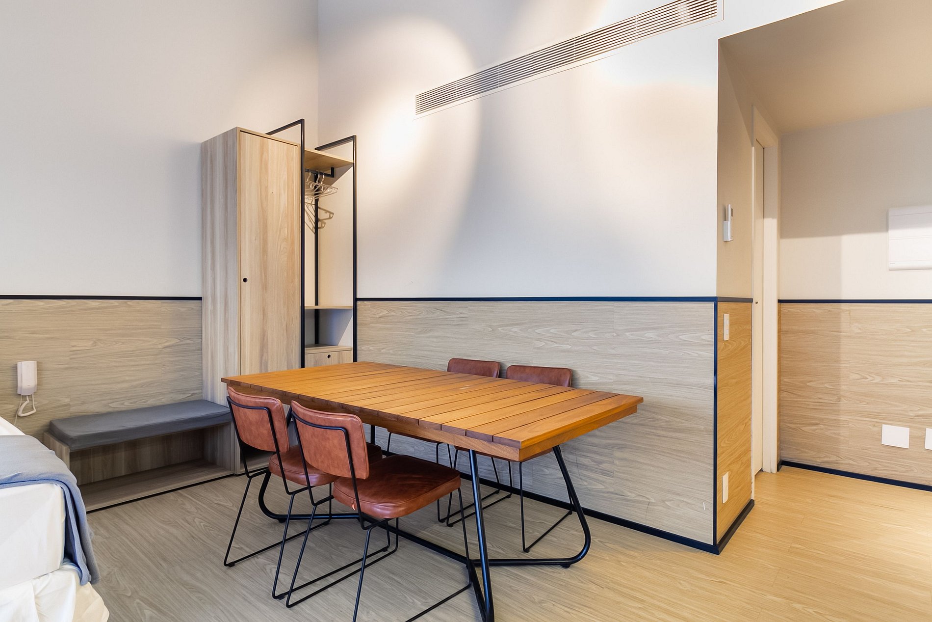 Nossos espaços são contemporâneos e práticos, oferecendo tudo o que você precisa para uma estadia confortável: Wi-Fi, TV, toalhas, roupa de cama completa e uma cozinha equipada com geladeira, cooktop de indução de uma boca, micro-ondas e utensílios.