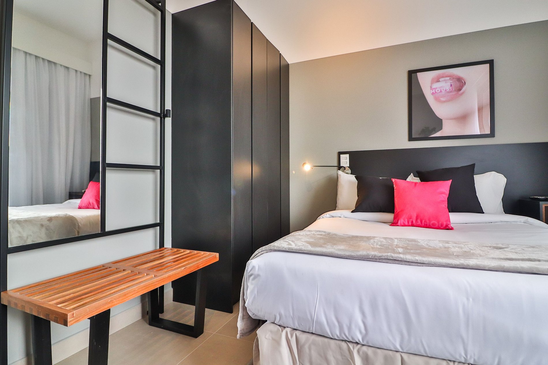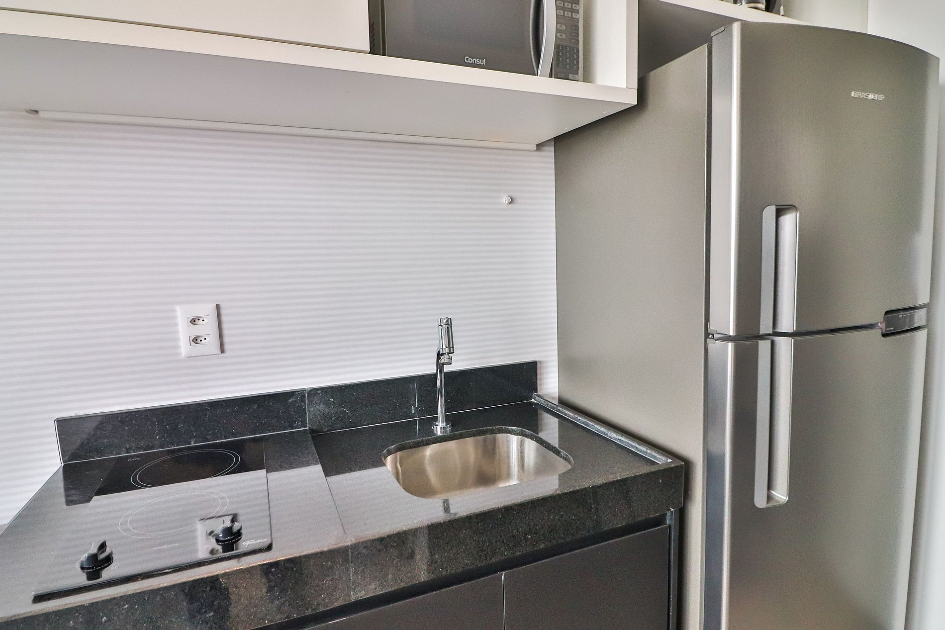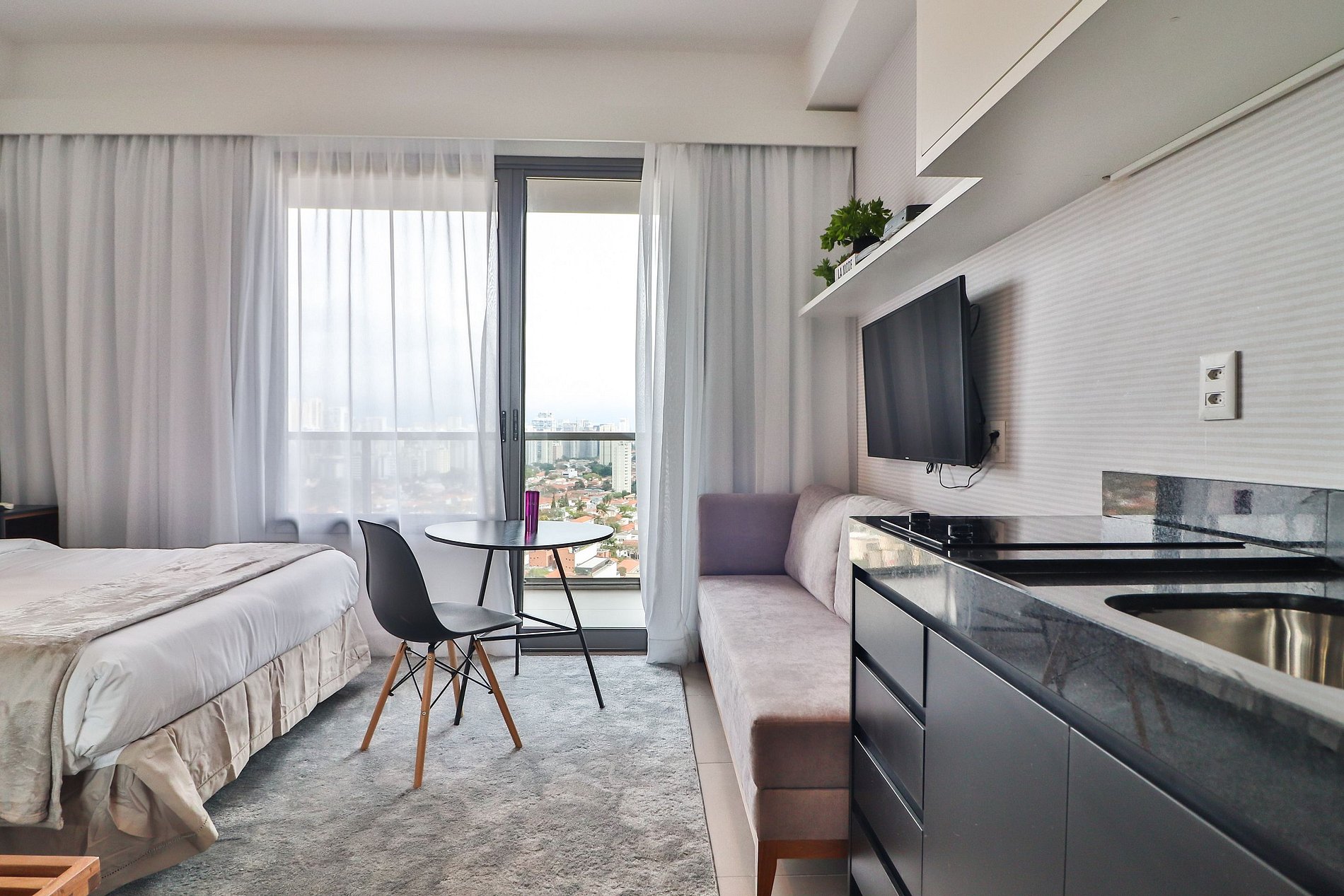 Os apês são todos mobiliados, decorados e equipados. Você tem à disposição Wi-Fi, TV a cabo, toalhas, roupa de cama completa e cozinha com geladeira, cooktop de indução de uma boca, microondas e utensílios. Escolha a sua e vem para Housi você também!
