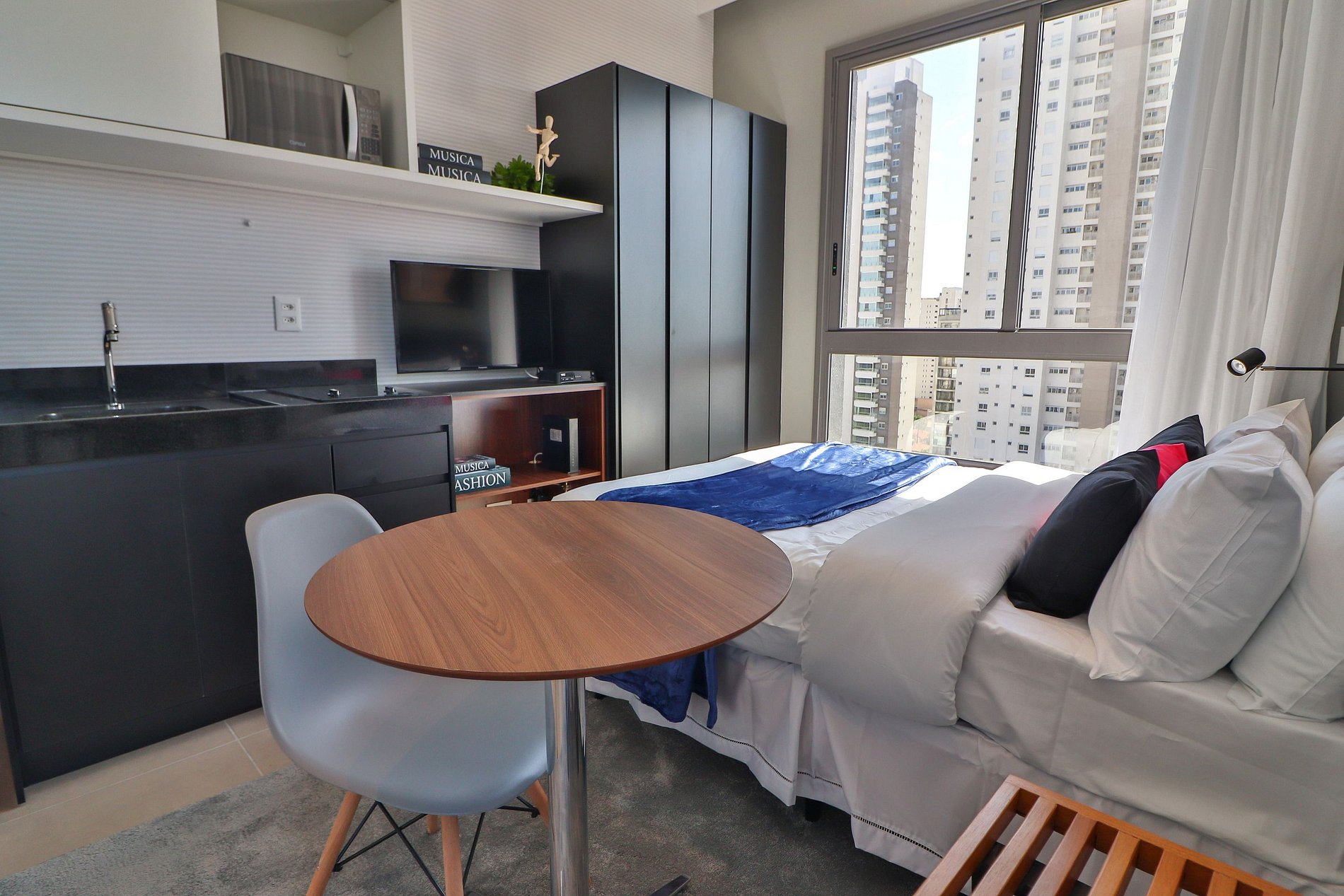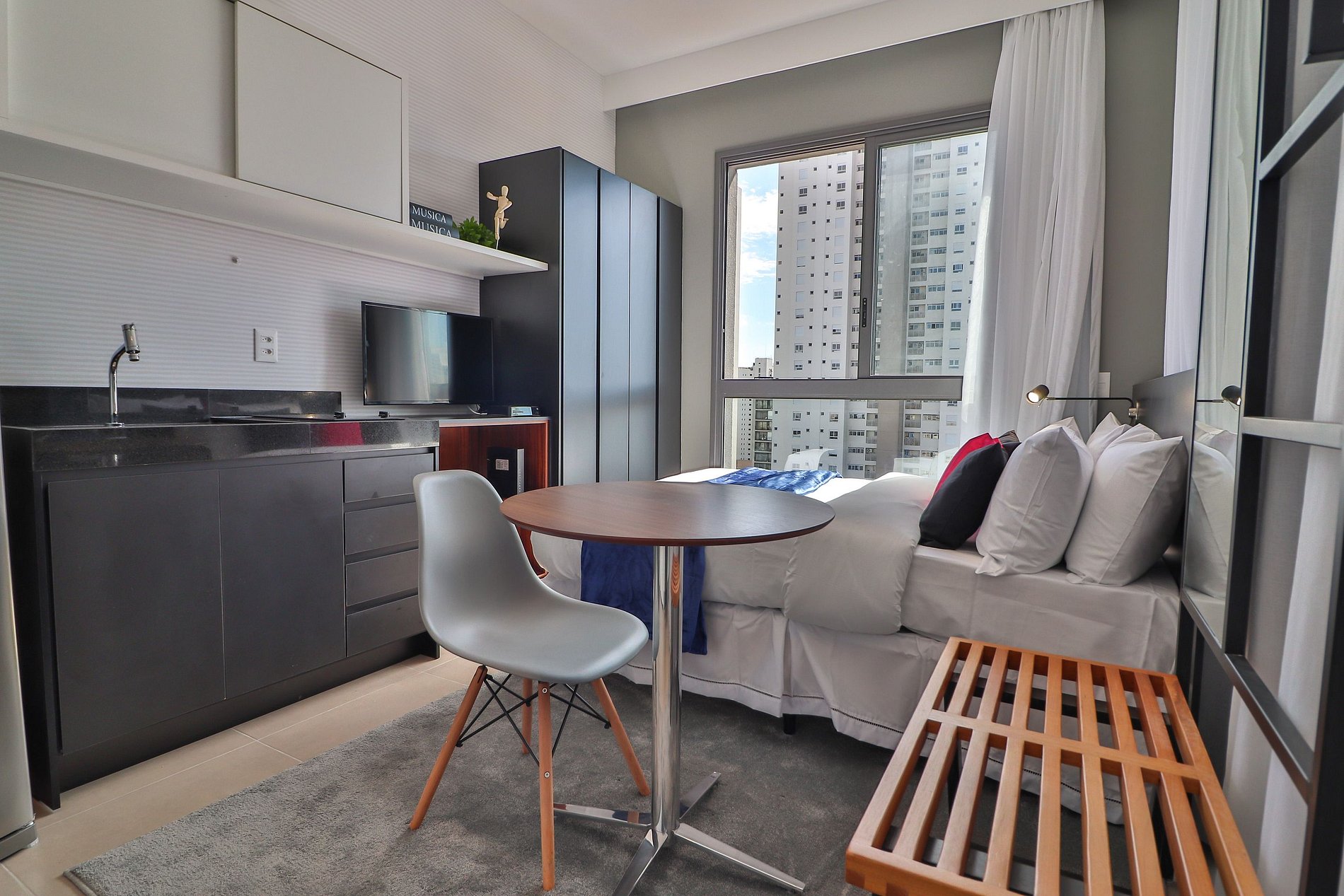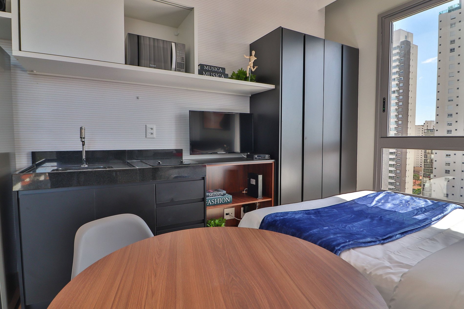 Os apês são todos mobiliados, decorados e equipados. Você tem à disposição Wi-Fi, TV a cabo, toalhas, roupa de cama completa e cozinha com geladeira, cooktop de indução de uma boca, microondas e utensílios. Escolha a sua e vem para Housi você também!
