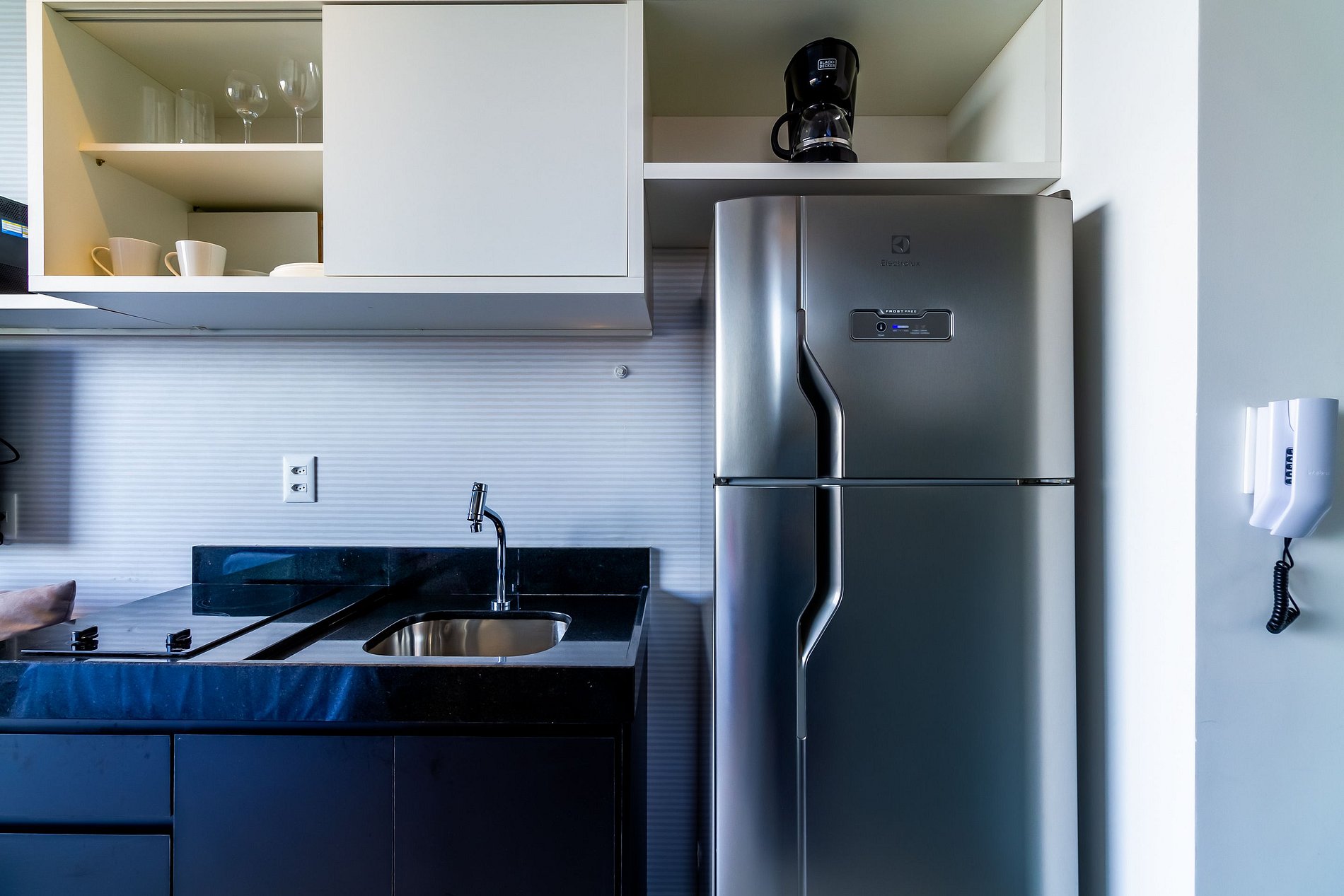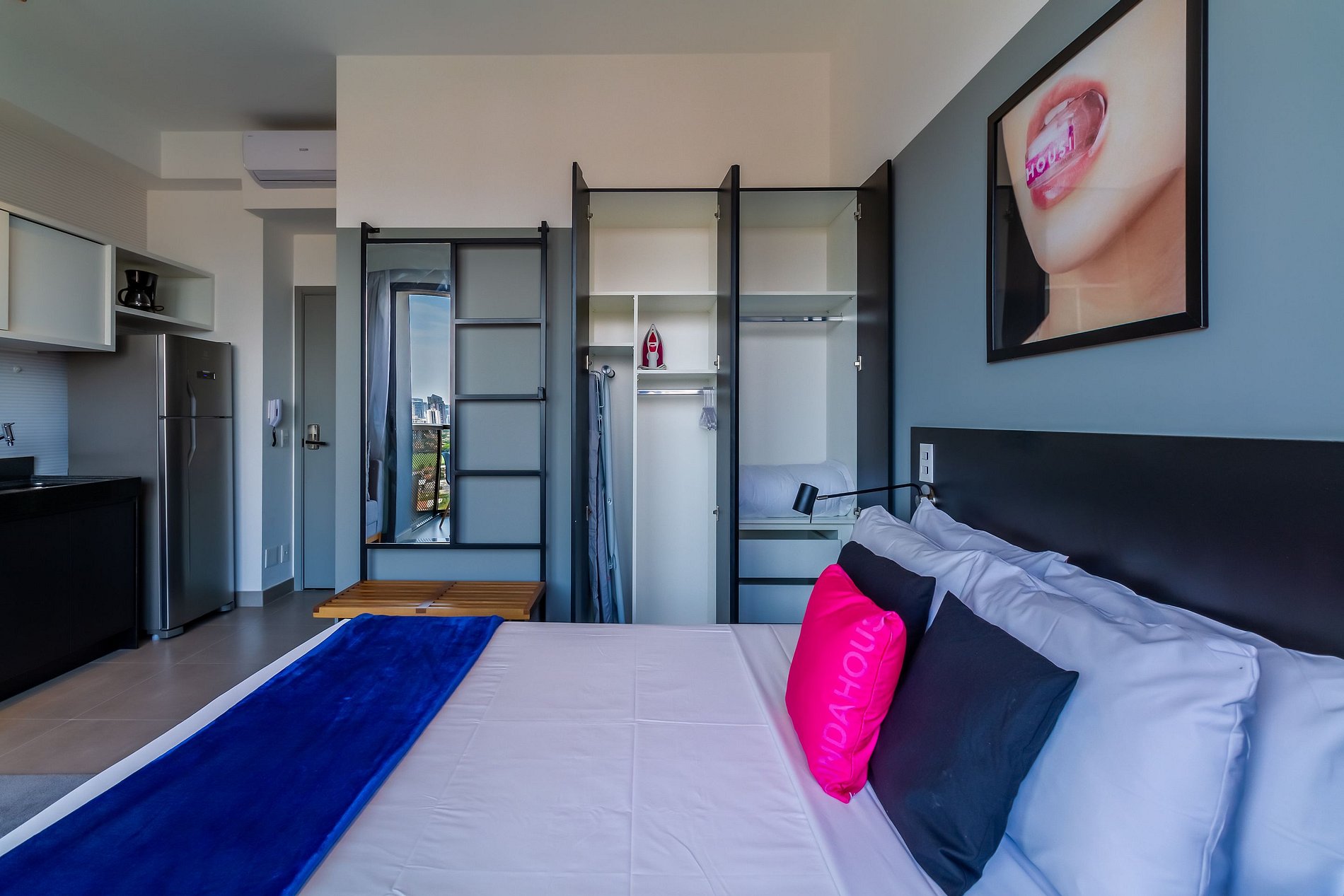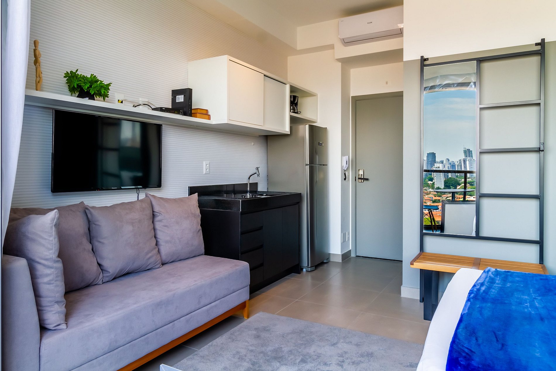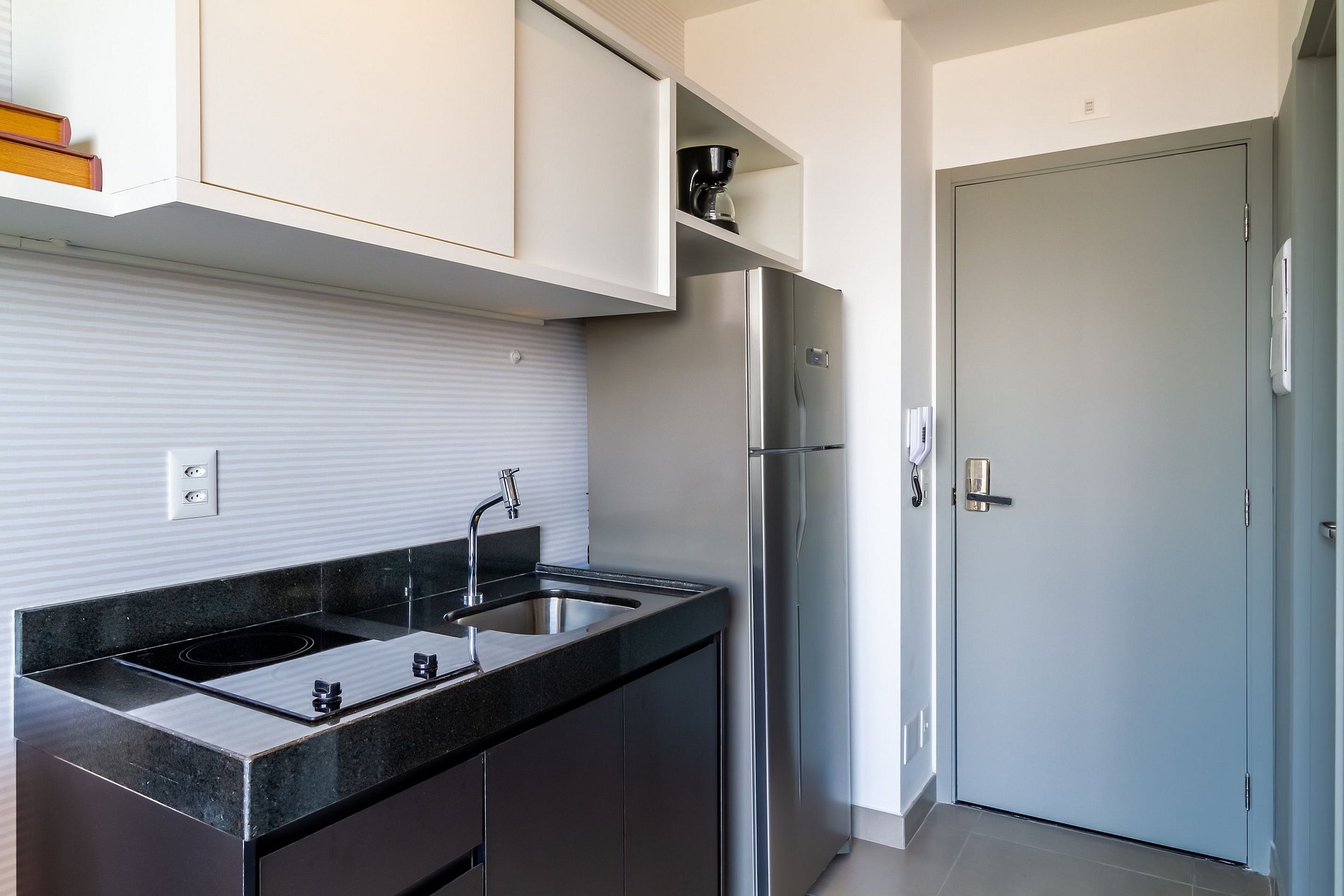 Os apês são todos mobiliados, decorados e equipados. Você tem à disposição Wi-Fi, TV a cabo, toalhas, roupa de cama completa e cozinha com geladeira, cooktop de indução de uma boca, microondas e utensílios. Escolha a sua e vem para Housi você também!
