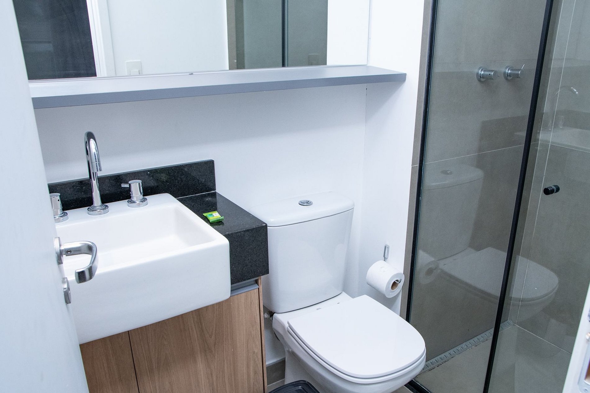 Nossos espaços são contemporâneos e práticos, oferecendo tudo o que você precisa para uma estadia confortável: Wi-Fi, TV a cabo, toalhas, roupa de cama completa e uma cozinha compacta equipada com geladeira, cooktop de indução de uma boca, micro-ondas e utensílios.