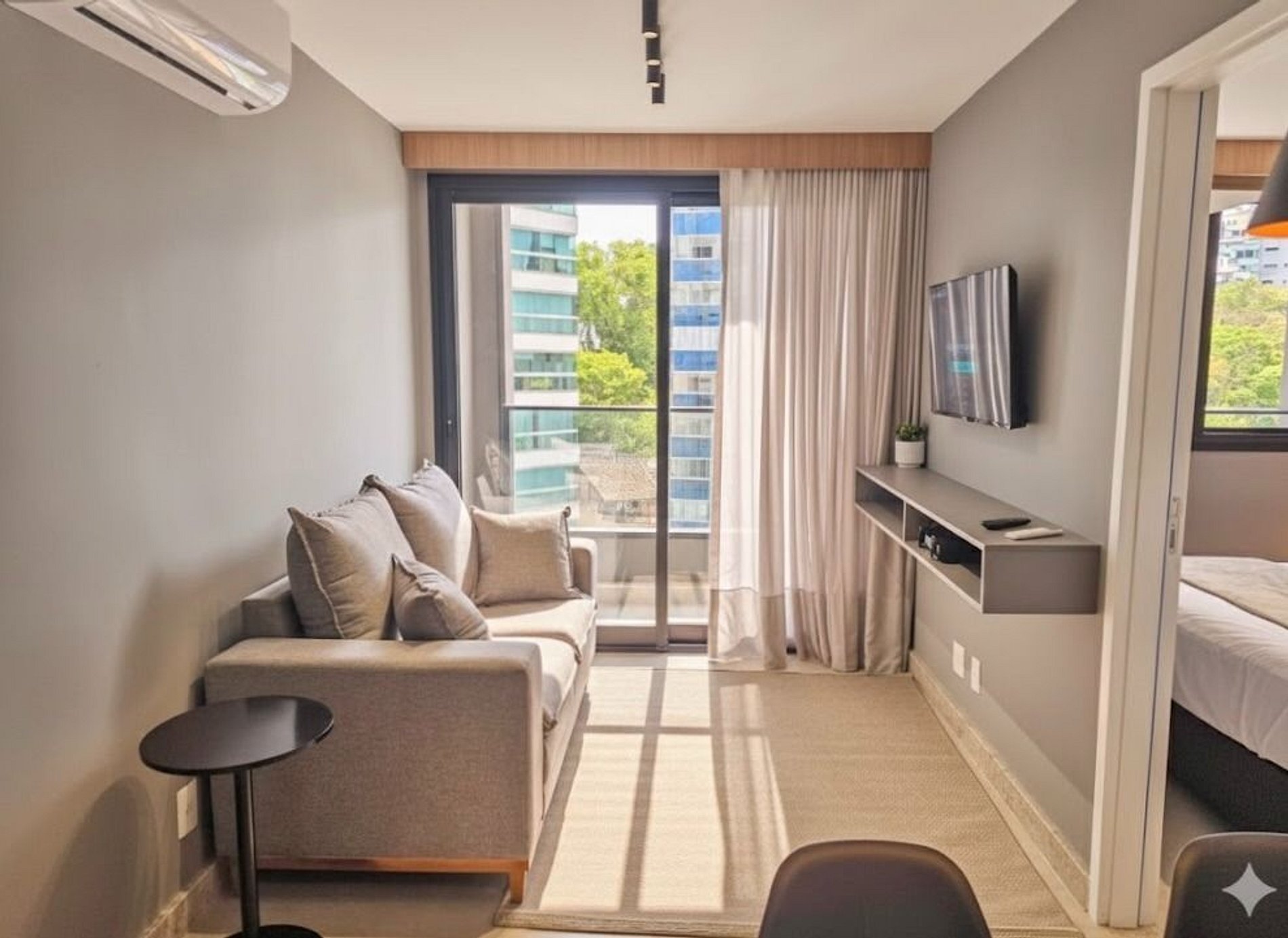 Neste empreendimento exclusivo você encontra studios e apartamentos de 1 quarto, com áreas privativas possuem aproximadamente 28 m².