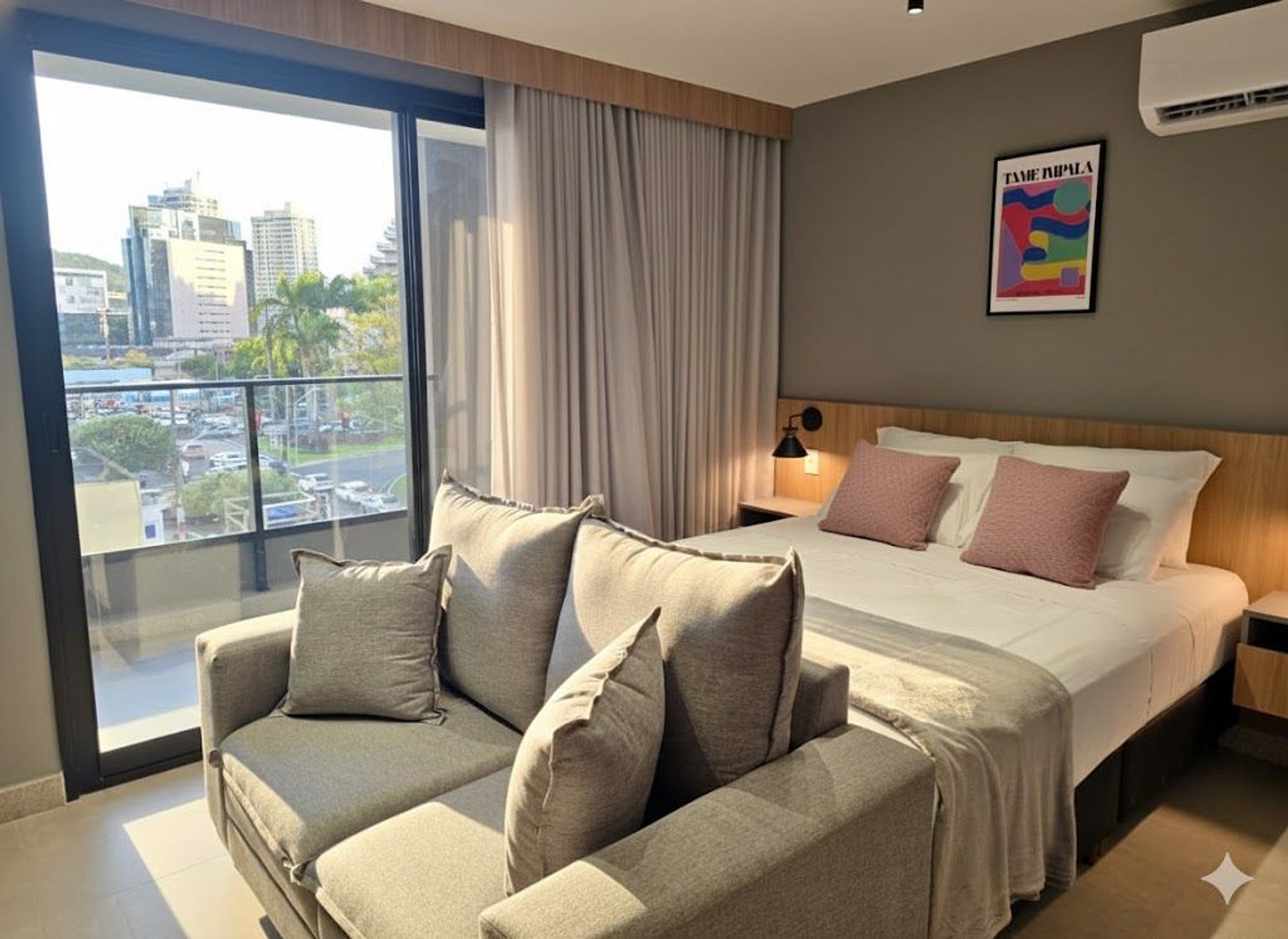 Neste empreendimento exclusivo você encontra studios e apartamentos de 1 quarto, com áreas privativas possuem aproximadamente 28 m².