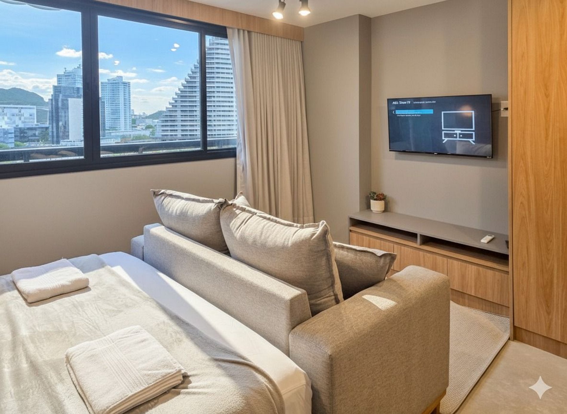 Neste empreendimento exclusivo você encontra studios e apartamentos de 1 quarto, com áreas privativas possuem aproximadamente 28 m².