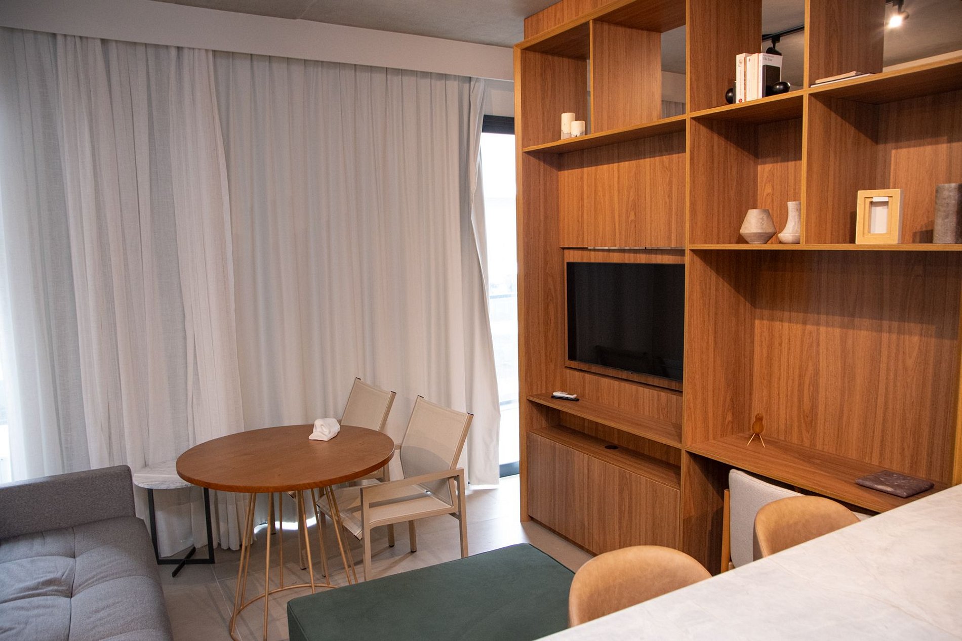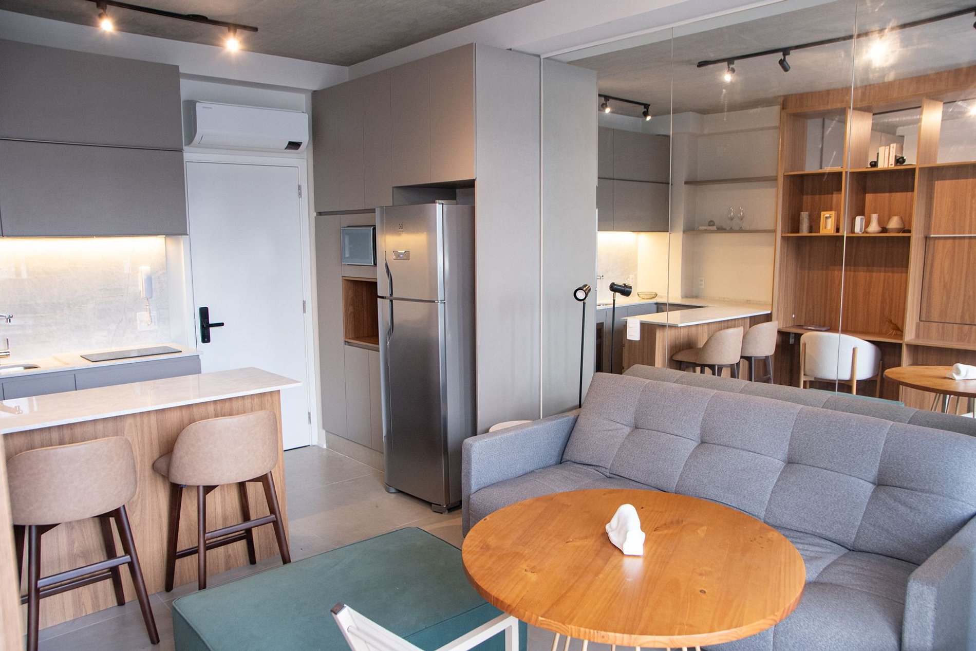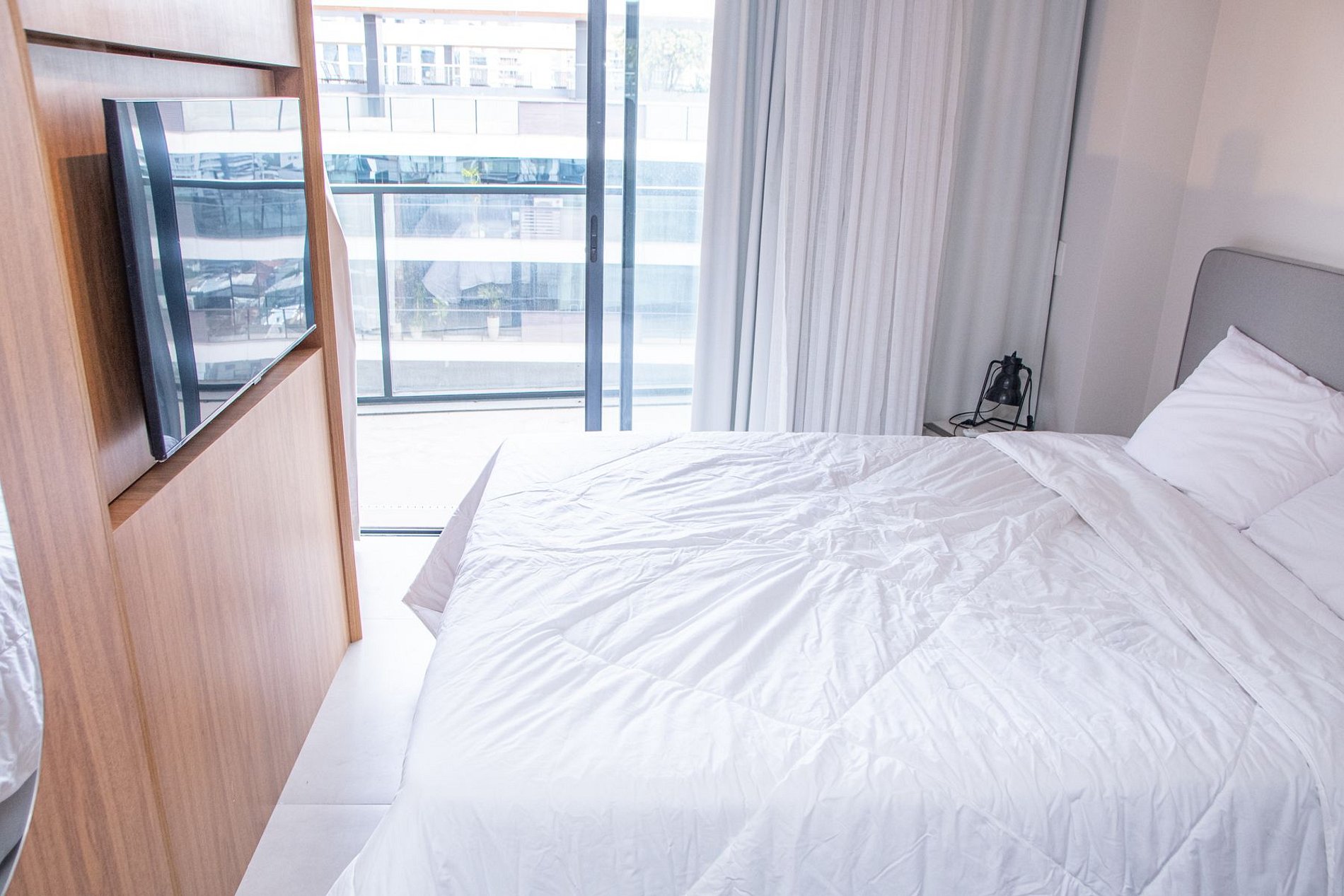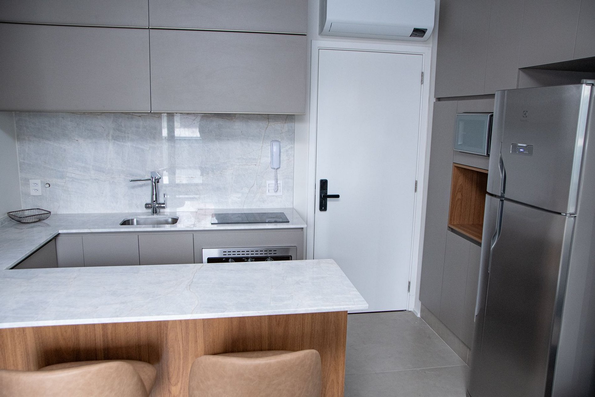 Nossos espaços são contemporâneos e práticos, oferecendo tudo o que você precisa para uma estadia confortável: Wi-Fi, TV a cabo, toalhas, roupa de cama completa e uma cozinha compacta equipada com geladeira, cooktop de indução de uma boca, micro-ondas e utensílios.