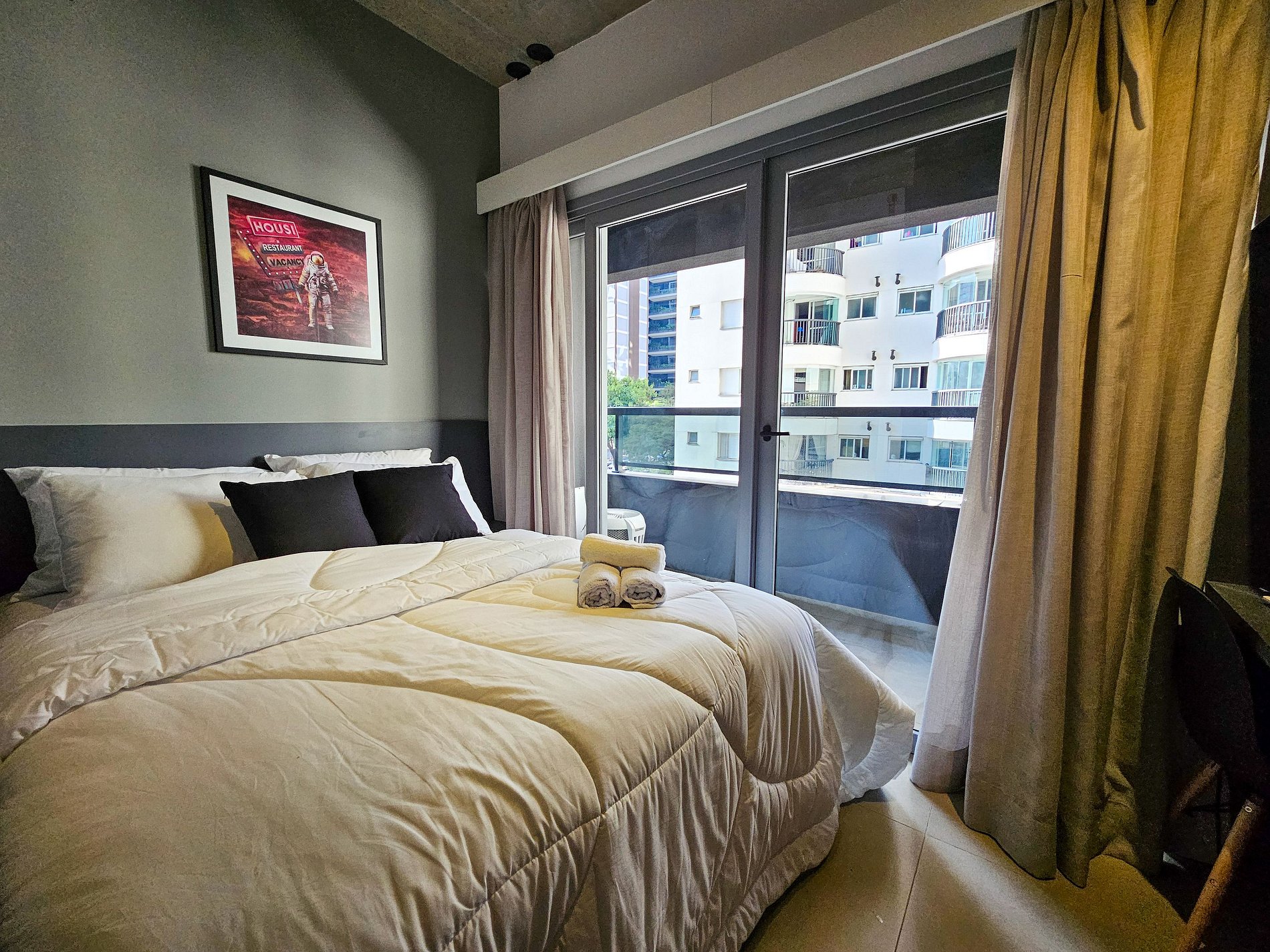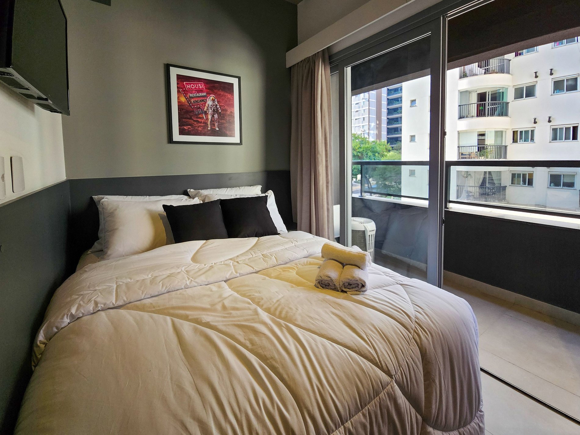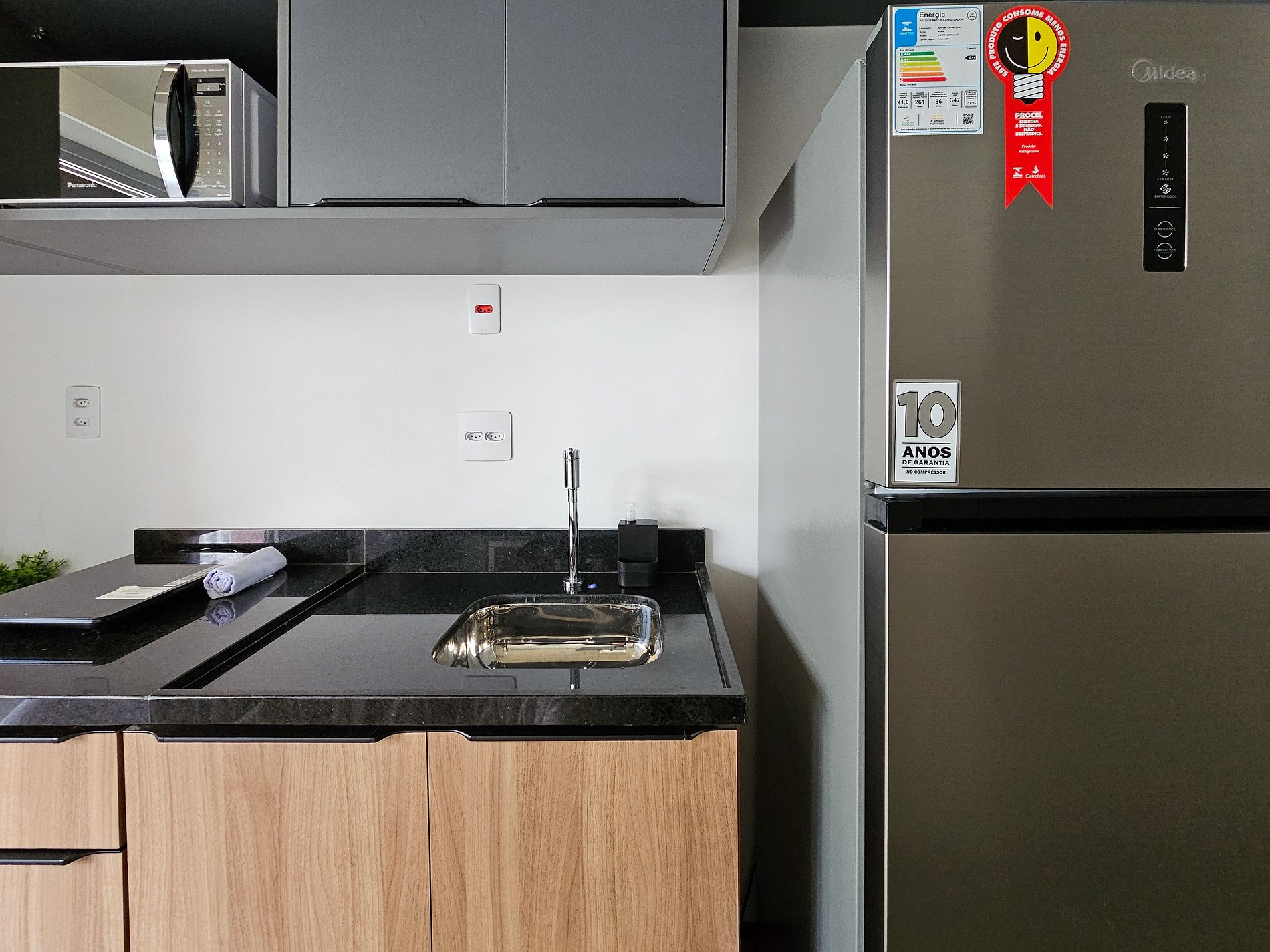 Nossos espaços são contemporâneos e práticos, oferecendo tudo o que você precisa para uma estadia confortável: Wi-Fi, TV a cabo, toalhas, roupa de cama completa e uma cozinha compacta equipada com geladeira, cooktop de indução de uma boca, micro-ondas e utensílios.