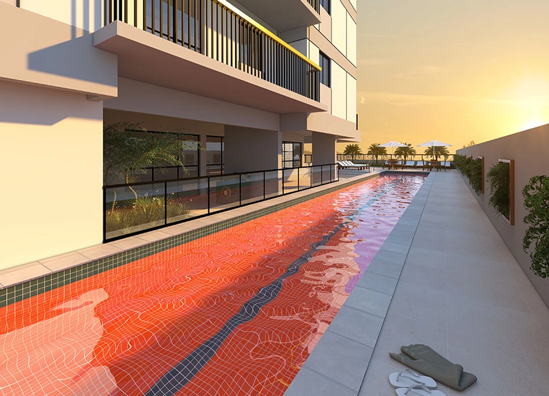 Área de lazer completa , incluindo academia, piscina, salão de festas e espaços de convivência.