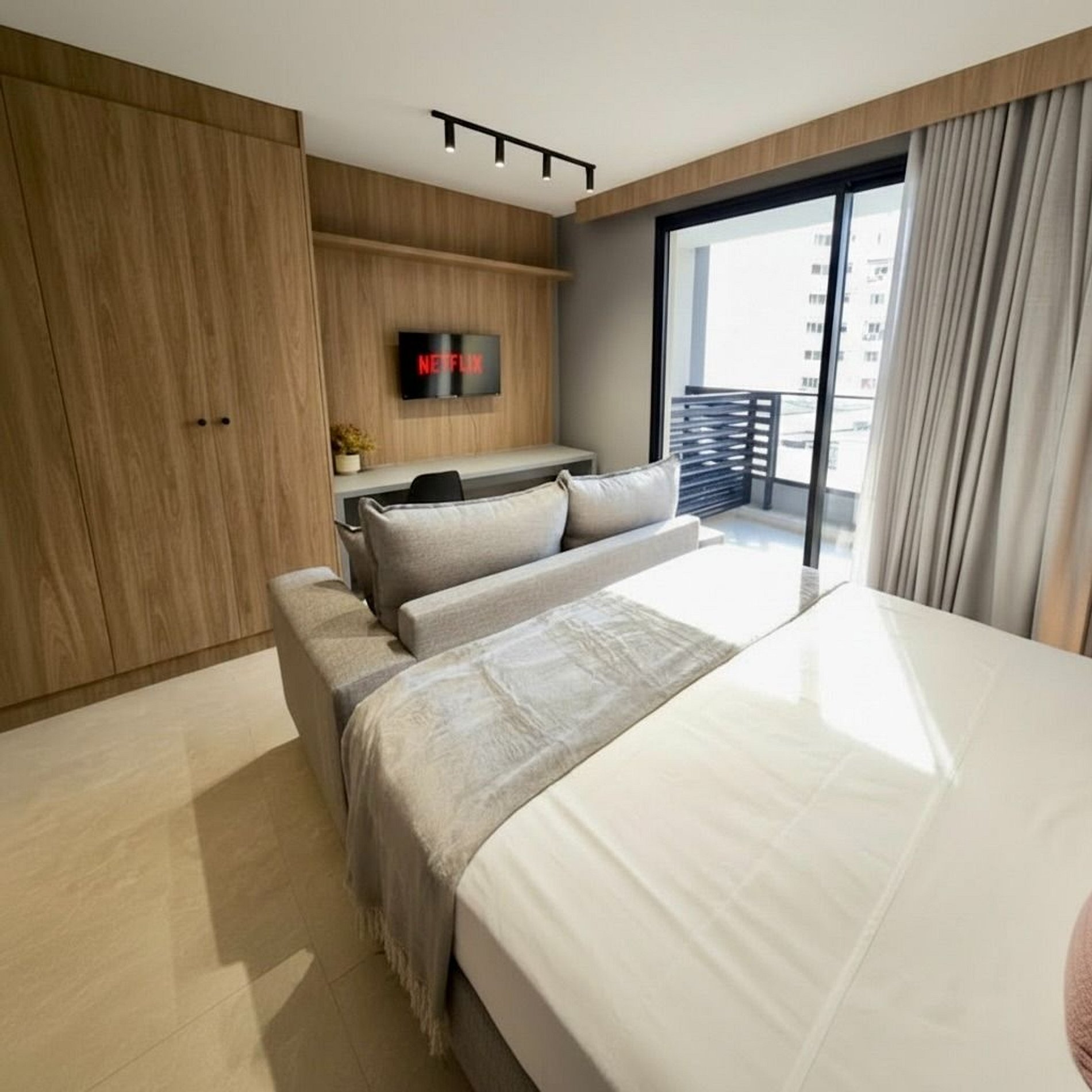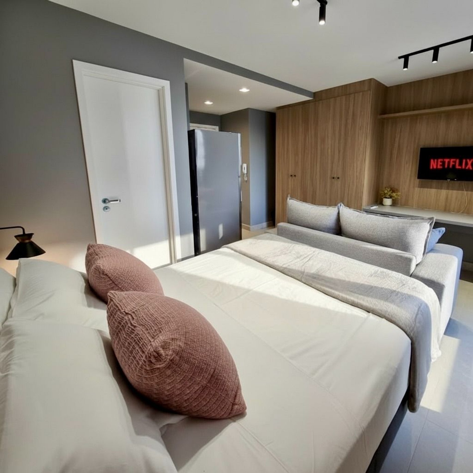 Neste empreendimento exclusivo você encontra studios e apartamentos de 1 quarto, com áreas privativas possuem aproximadamente 28 m².
