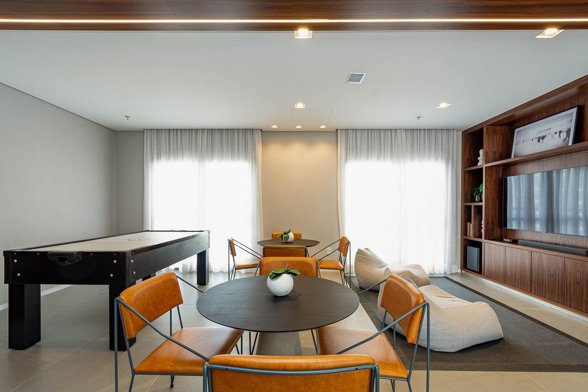Áreas comuns completas, incluindo academia, salão de festas e espaço gourmet.