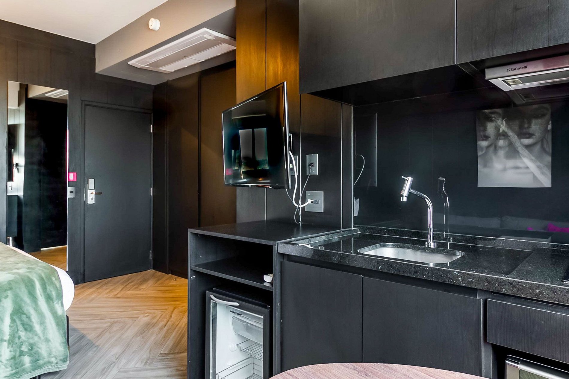 Nossos espaços são modernos e funcionais, equipados com o que você precisa para uma estadia confortável: Wi-Fi, TV a cabo, toalhas, roupa de cama completa e uma cozinha equipada cooktop de indução de uma boca, microondas e utensílios.