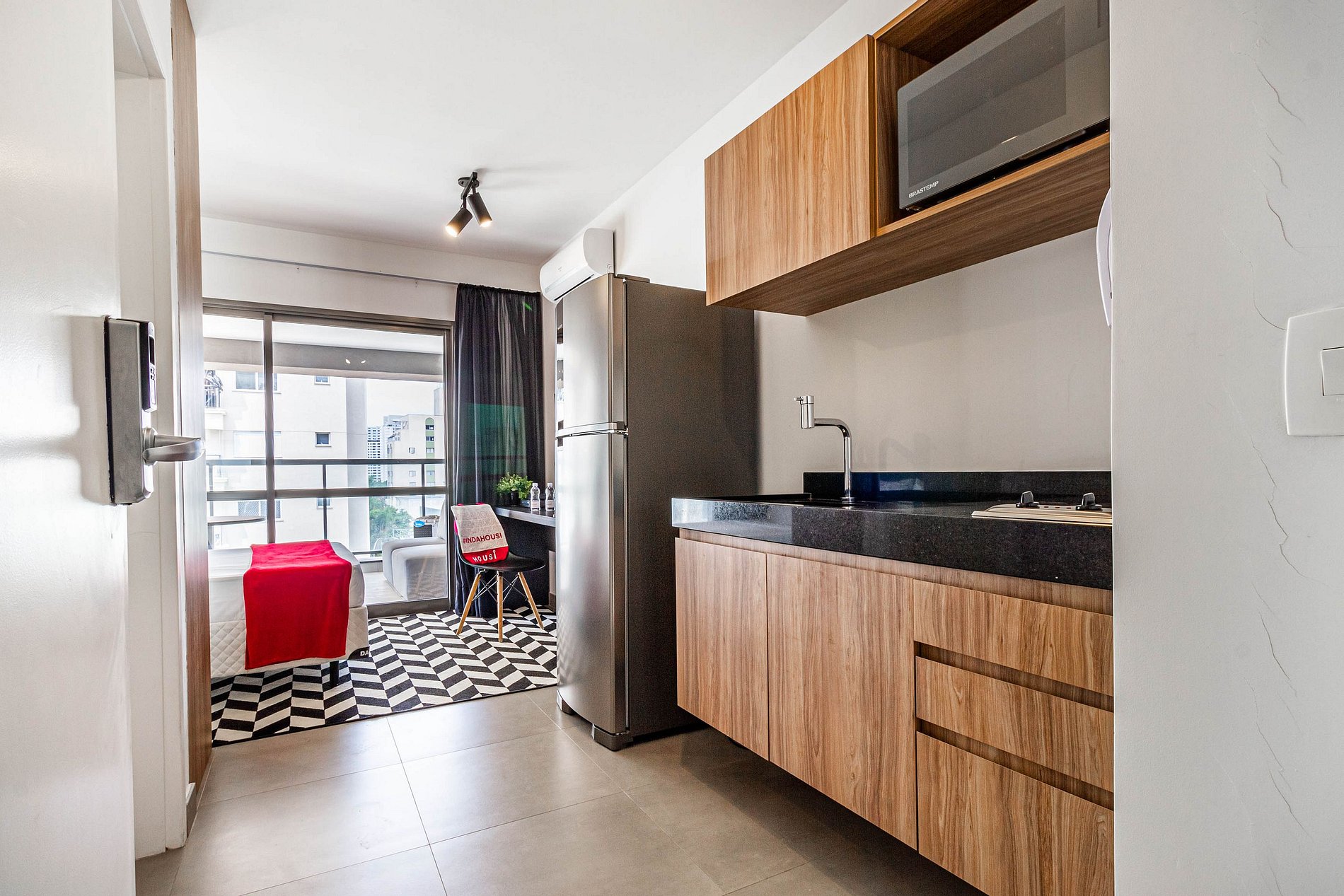 Os apês são todos mobiliados, decorados e equipados. Você tem à disposição Wi-Fi, TV a cabo, toalhas, roupa de cama completa e cozinha com geladeira, cooktop de indução de uma boca, microondas e utensílios. Escolha a sua e vem para Housi você também!