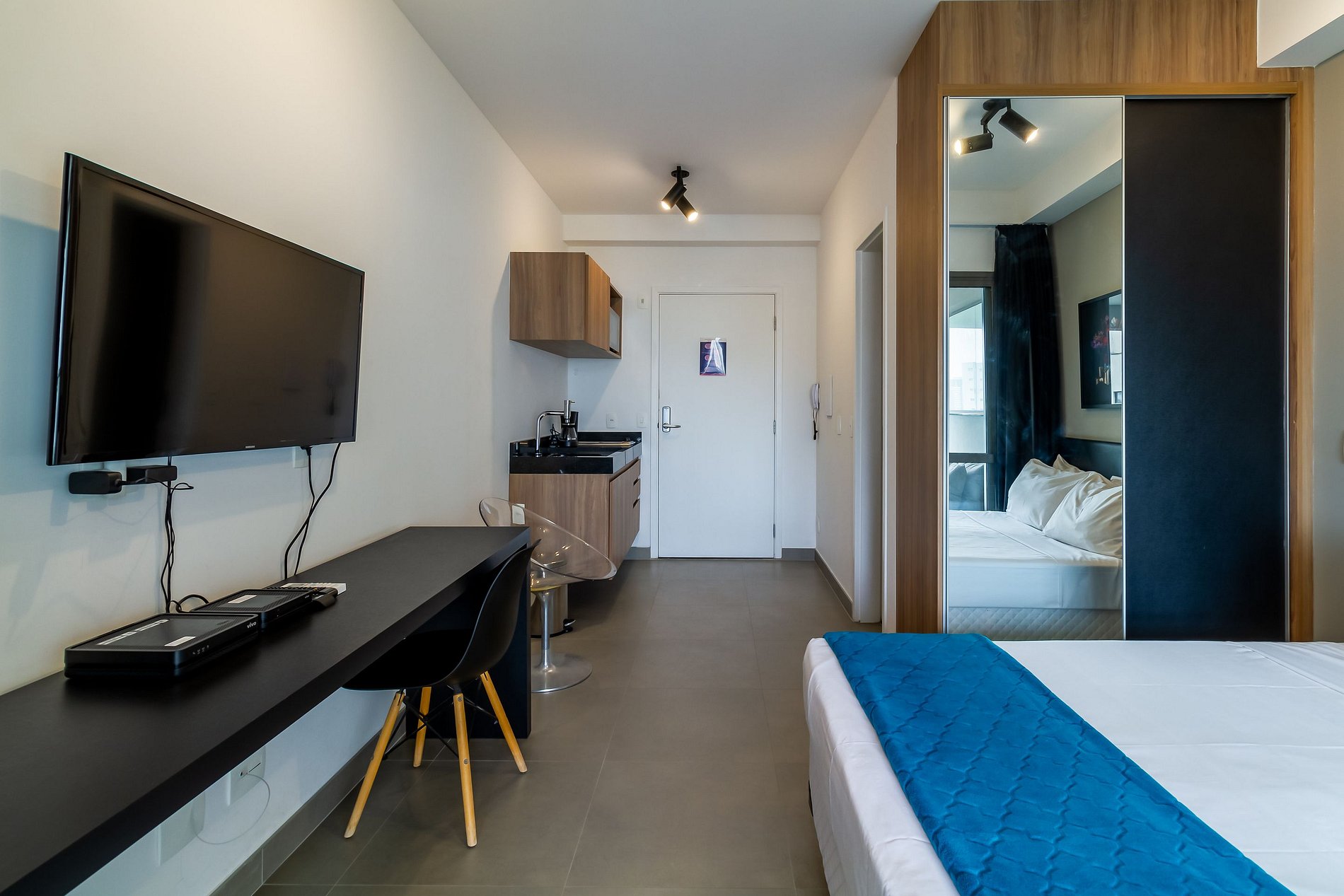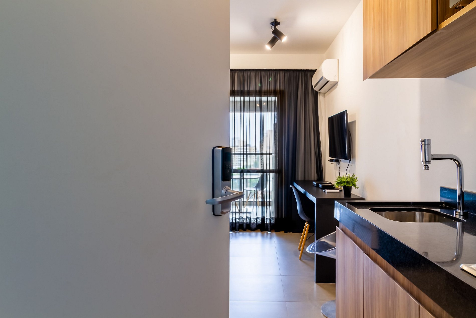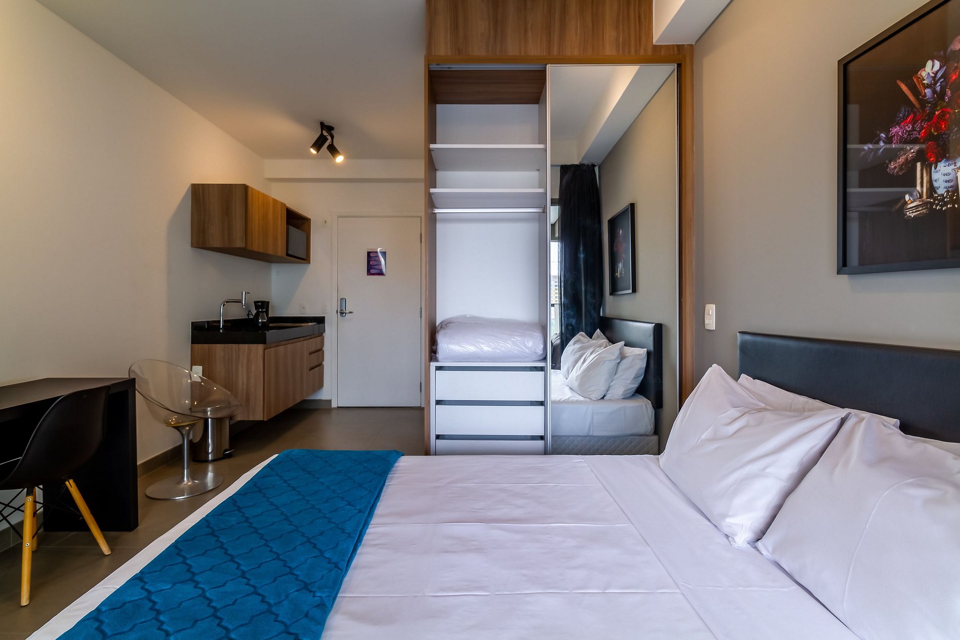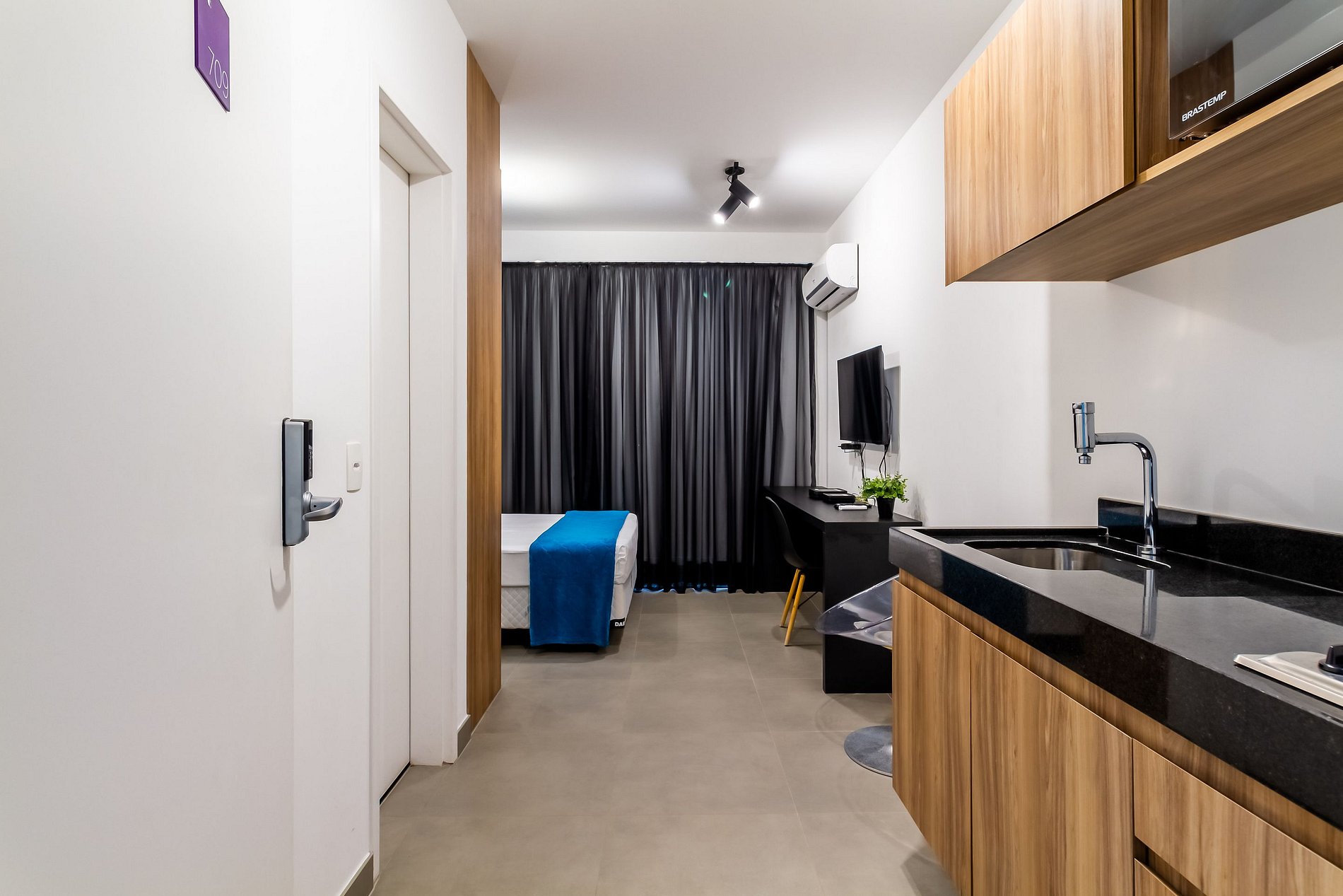 Os apês são todos mobiliados, decorados e equipados. Você tem à disposição Wi-Fi, TV a cabo, toalhas, roupa de cama completa e cozinha com geladeira, cooktop de indução de uma boca, microondas e utensílios. Escolha a sua e vem para Housi você também!