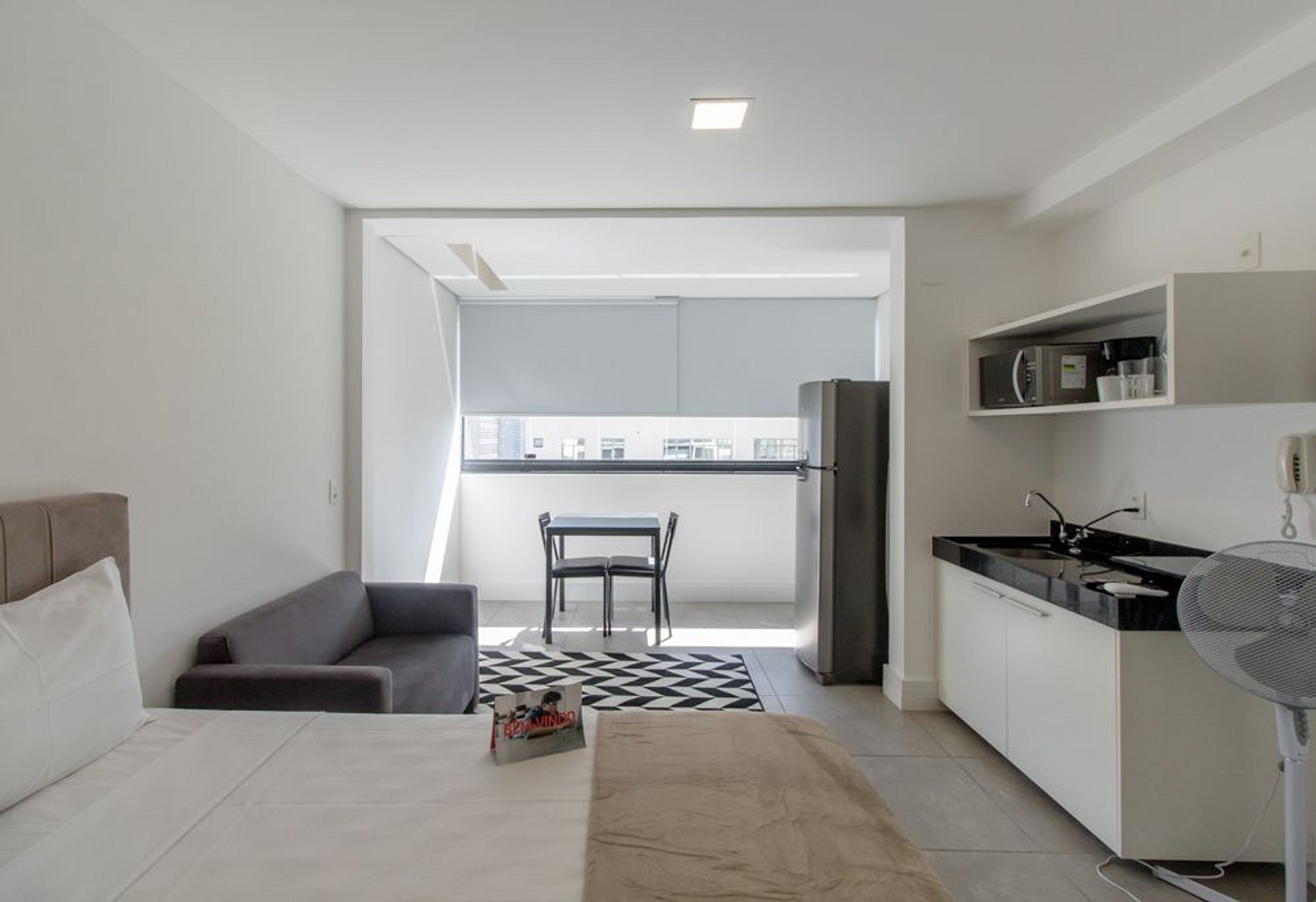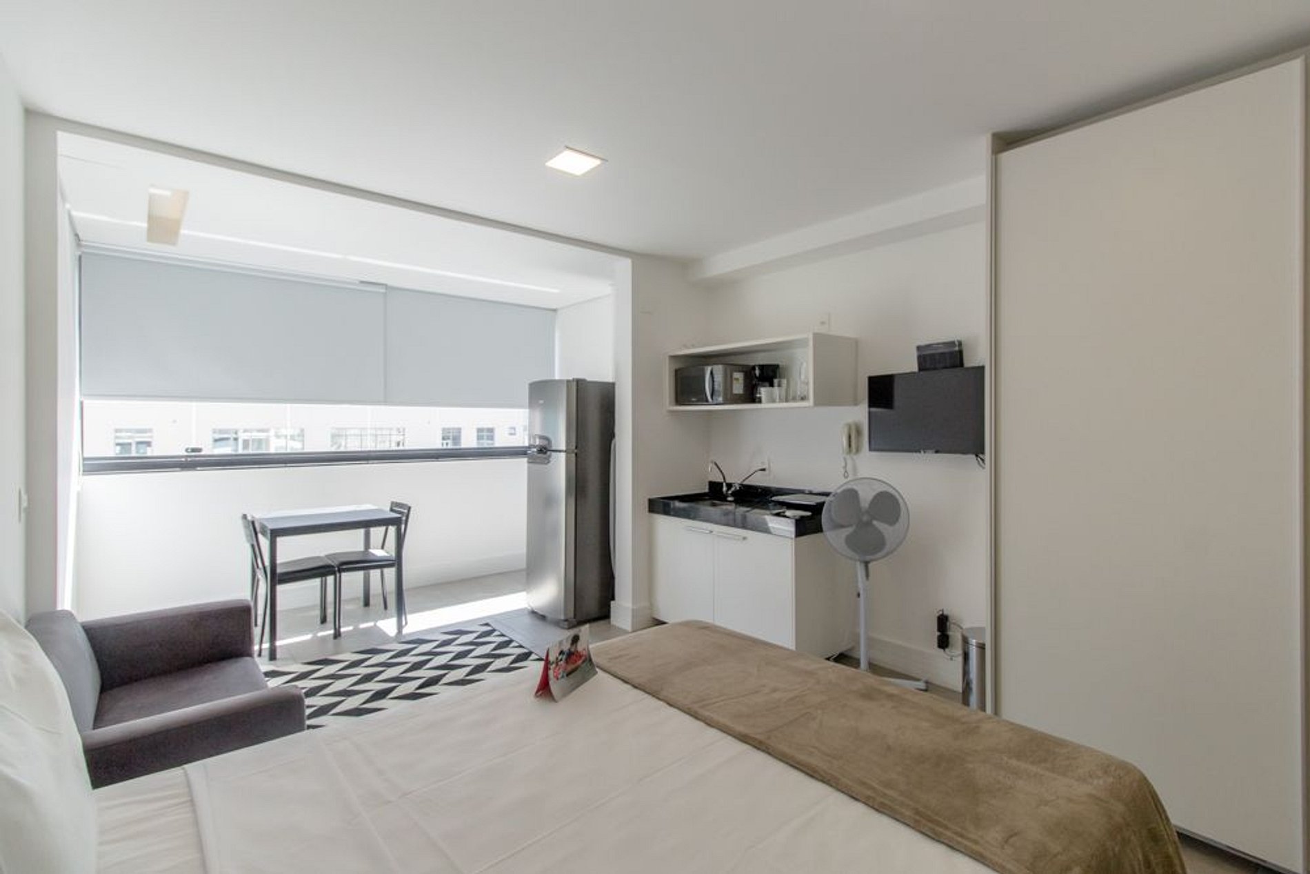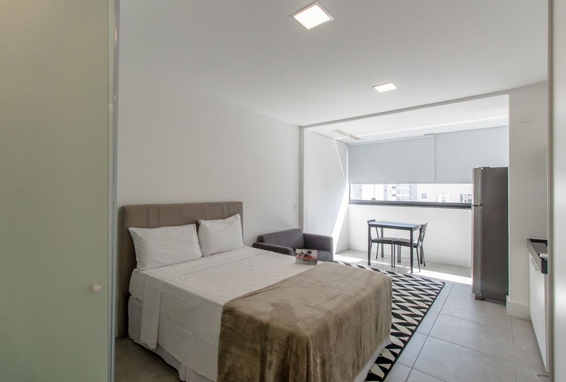 Os apês são todos mobiliados, decorados e equipados. Você tem à disposição Wi-Fi, TV a cabo, toalhas, roupa de cama completa e cozinha com geladeira, cooktop de indução de uma boca, microondas e utensílios. Escolha a sua e vem para Housi você também!