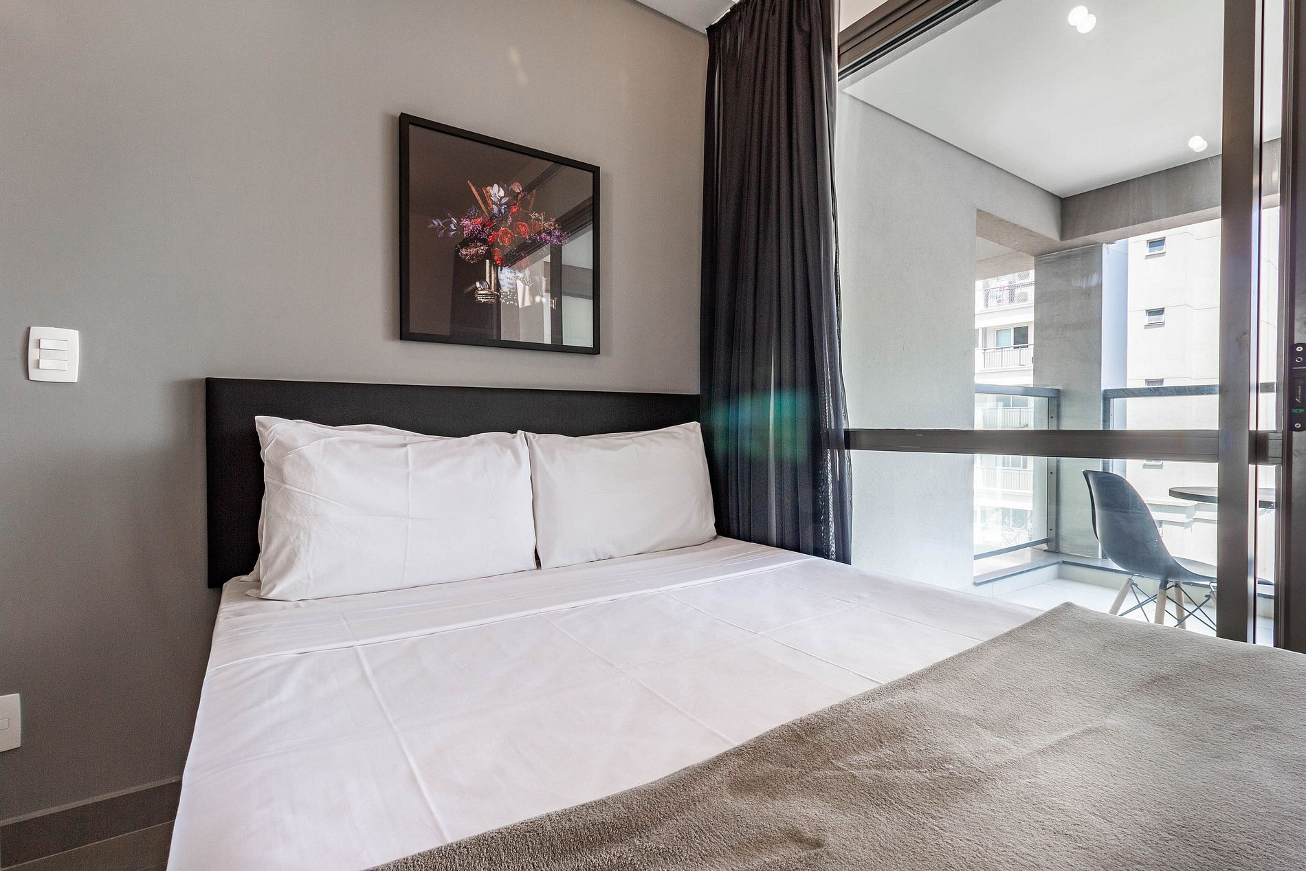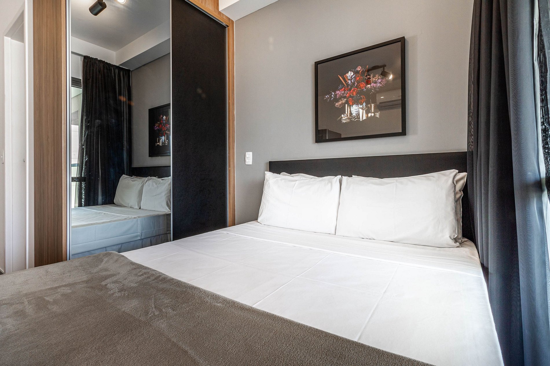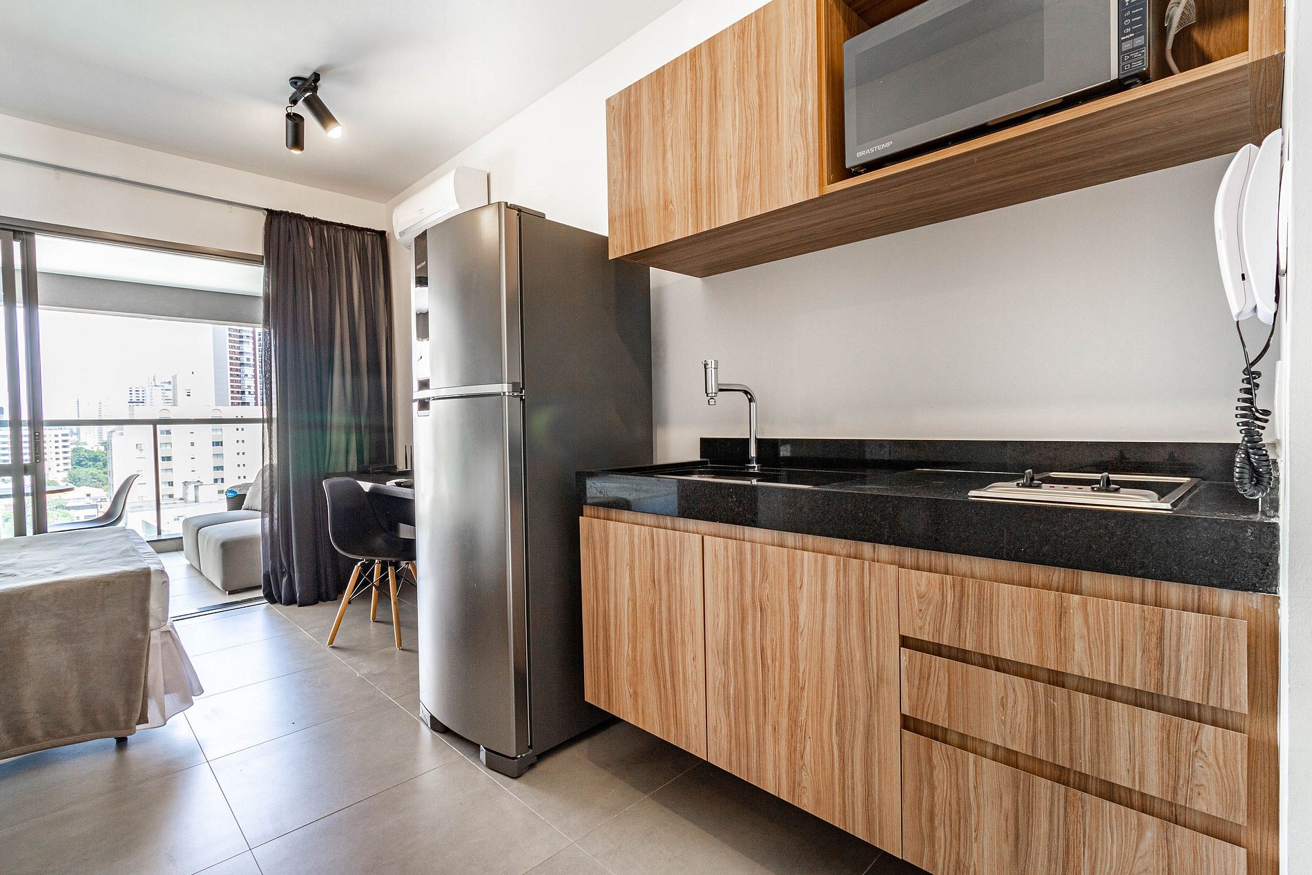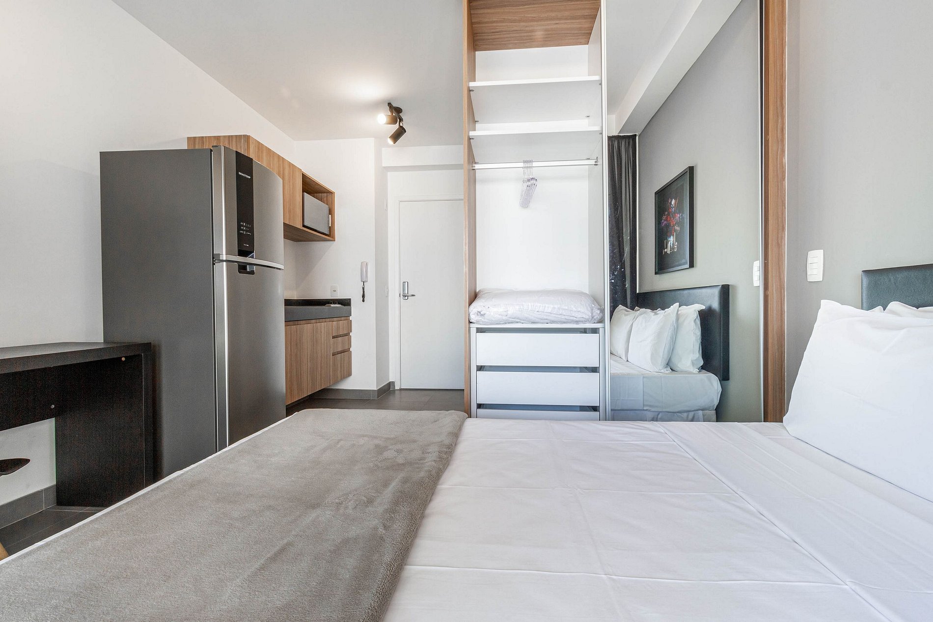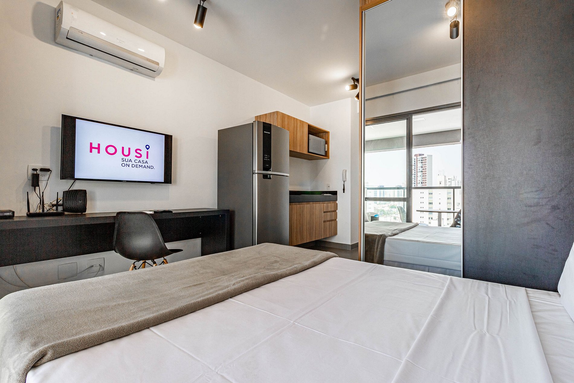 Os apês são todos mobiliados, decorados e equipados. Você tem à disposição Wi-Fi, TV a cabo, toalhas, roupa de cama completa e cozinha com geladeira, cooktop de indução de uma boca, microondas e utensílios. Escolha a sua e vem para Housi você também!