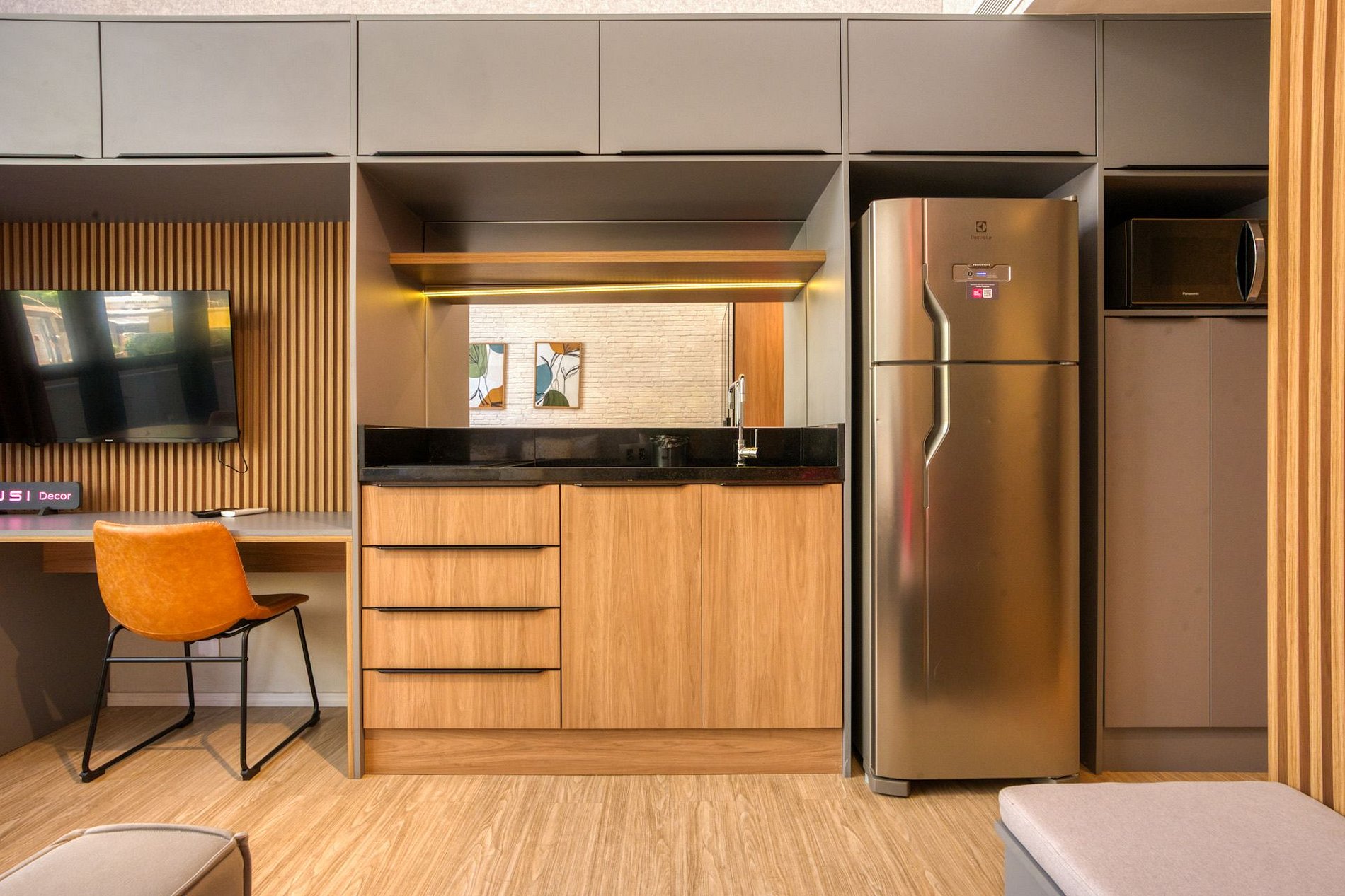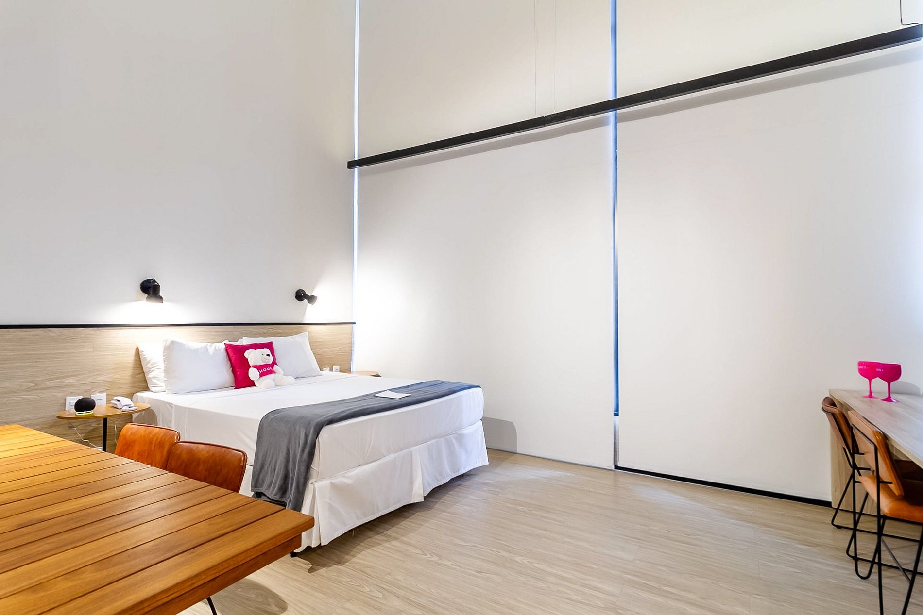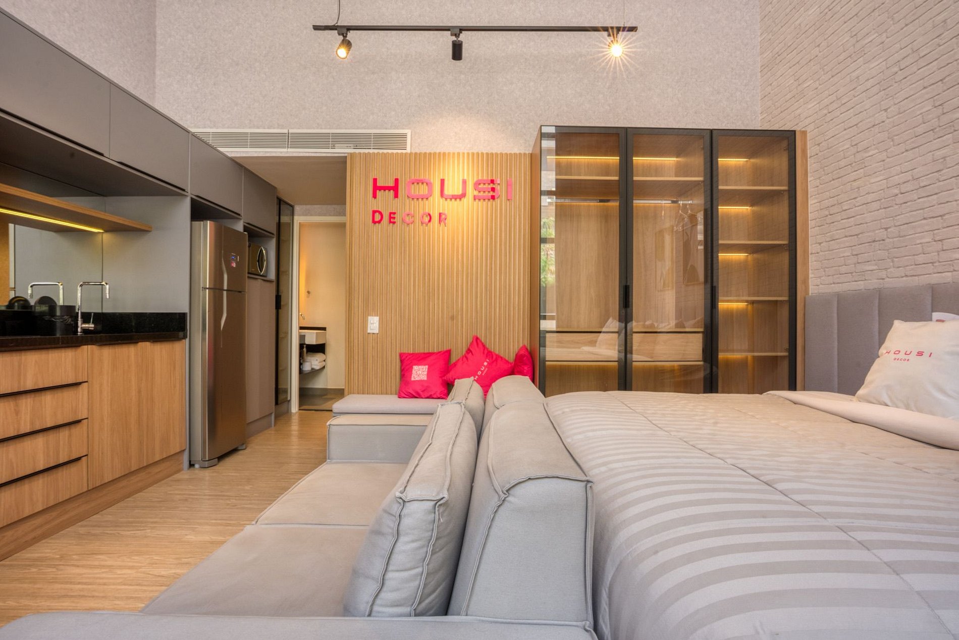 Os apês são todos mobiliados, decorados e equipados. Você tem à disposição Wi-Fi, TV, toalhas, roupa de cama completa e cozinha com geladeira, cooktop de indução de uma boca, microondas e utensílios. Escolha a sua e vem para Housi você também!