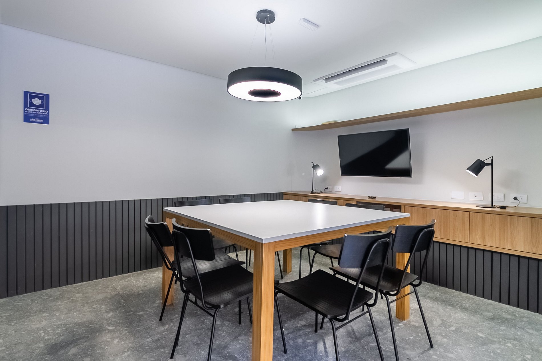 Nossas instalações comuns são equipadas com mesas, sofás e espaços de trabalho, fornecendo tomadas e Wi-Fi gratuito. Também oferecemos opções de co-working individual para locação.