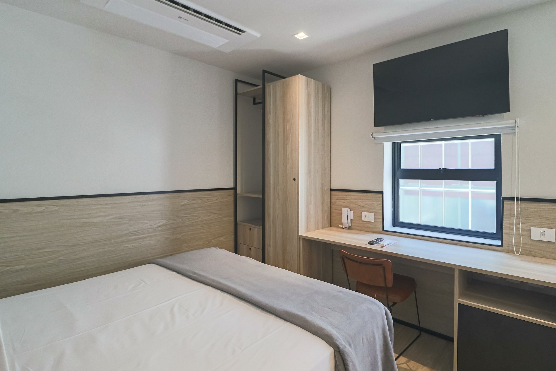 Nossos espaços são contemporâneos e práticos, oferecendo tudo o que você precisa para uma estadia confortável: Wi-Fi, TV a cabo, toalhas, roupa de cama completa e uma cozinha equipada com geladeira, cooktop de indução de uma boca, micro-ondas e utensílios.