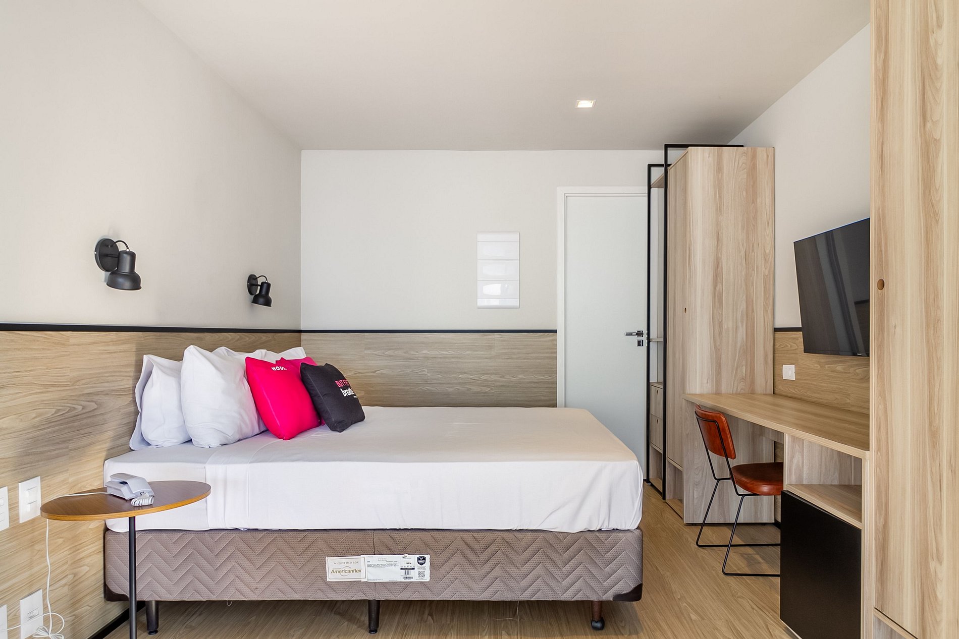 Nossos espaços são contemporâneos e práticos, oferecendo tudo o que você precisa para uma estadia confortável: Wi-Fi, TV, toalhas, roupa de cama completa e uma cozinha equipada com geladeira, cooktop de indução de uma boca, micro-ondas e utensílios.