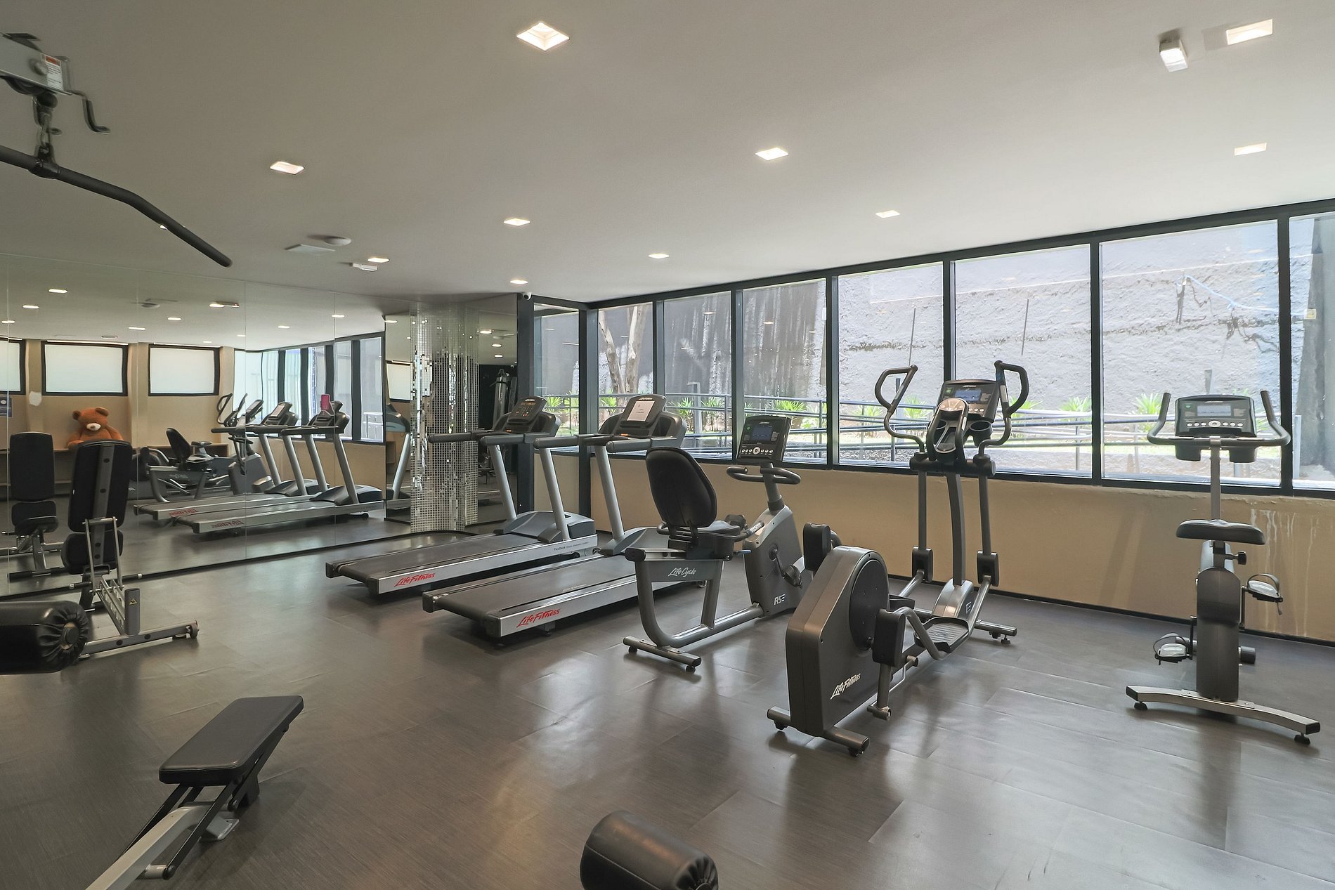 Os apês são todos mobiliados, decorados e equipados. Você tem à disposição Wi-Fi, ar condicionado, TV a cabo, toalhas, roupa de cama completa e cozinha com geladeira, cooktop elétrico de duas bocas, microondas e utensílios.