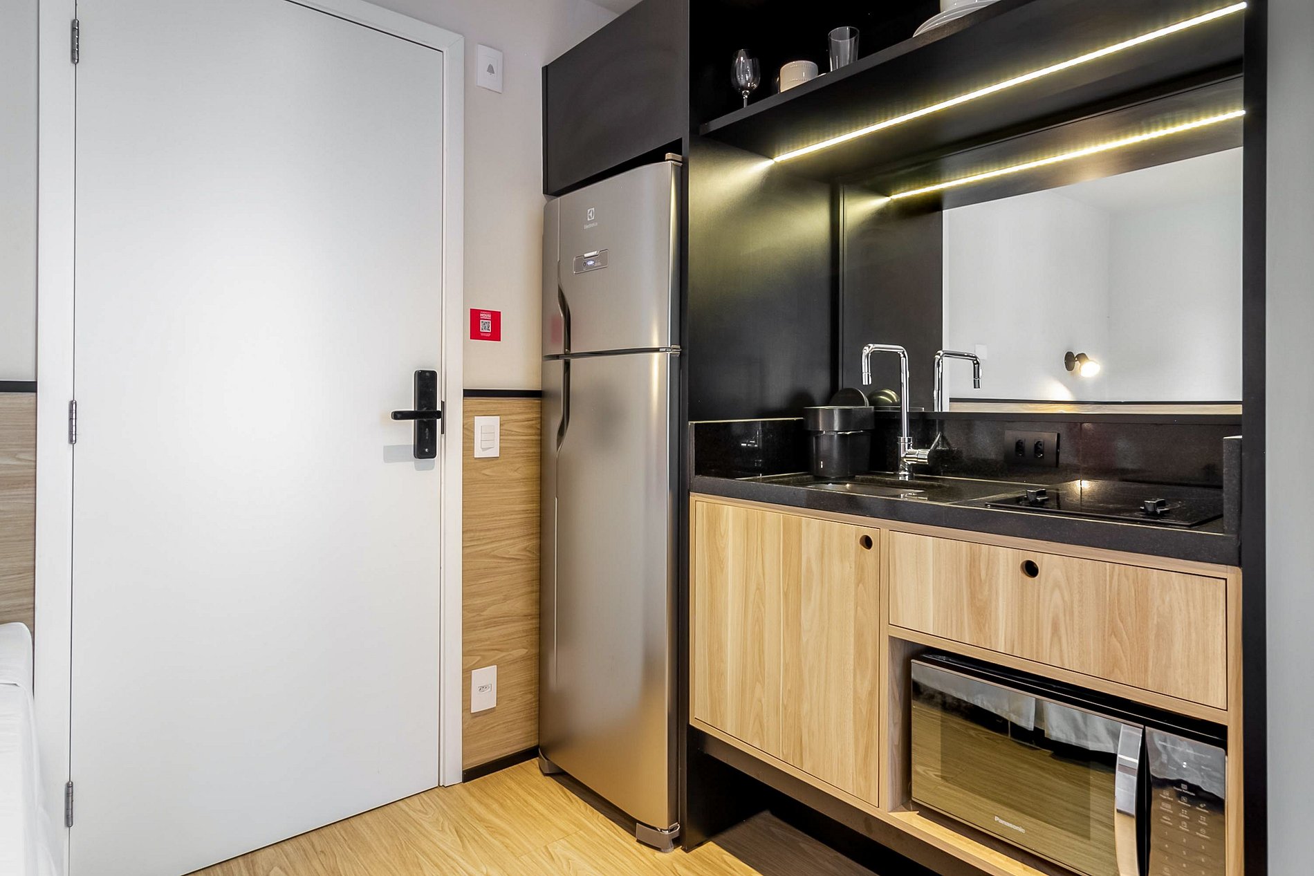 Nossos espaços são contemporâneos e práticos, oferecendo tudo o que você precisa para uma estadia confortável: Wi-Fi, TV a cabo, toalhas, roupa de cama completa e uma cozinha equipada com geladeira, cooktop de indução de uma boca, micro-ondas e utensílios.