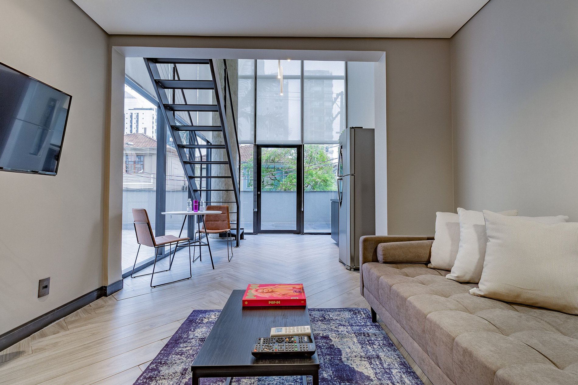 Os apês são todos mobiliados, decorados e equipados. Você tem à disposição Wi-Fi, ar condicionado, TV a cabo, toalhas, roupa de cama completa e cozinha com geladeira, cooktop elétrico de duas bocas, micro-ondas e utensílios.