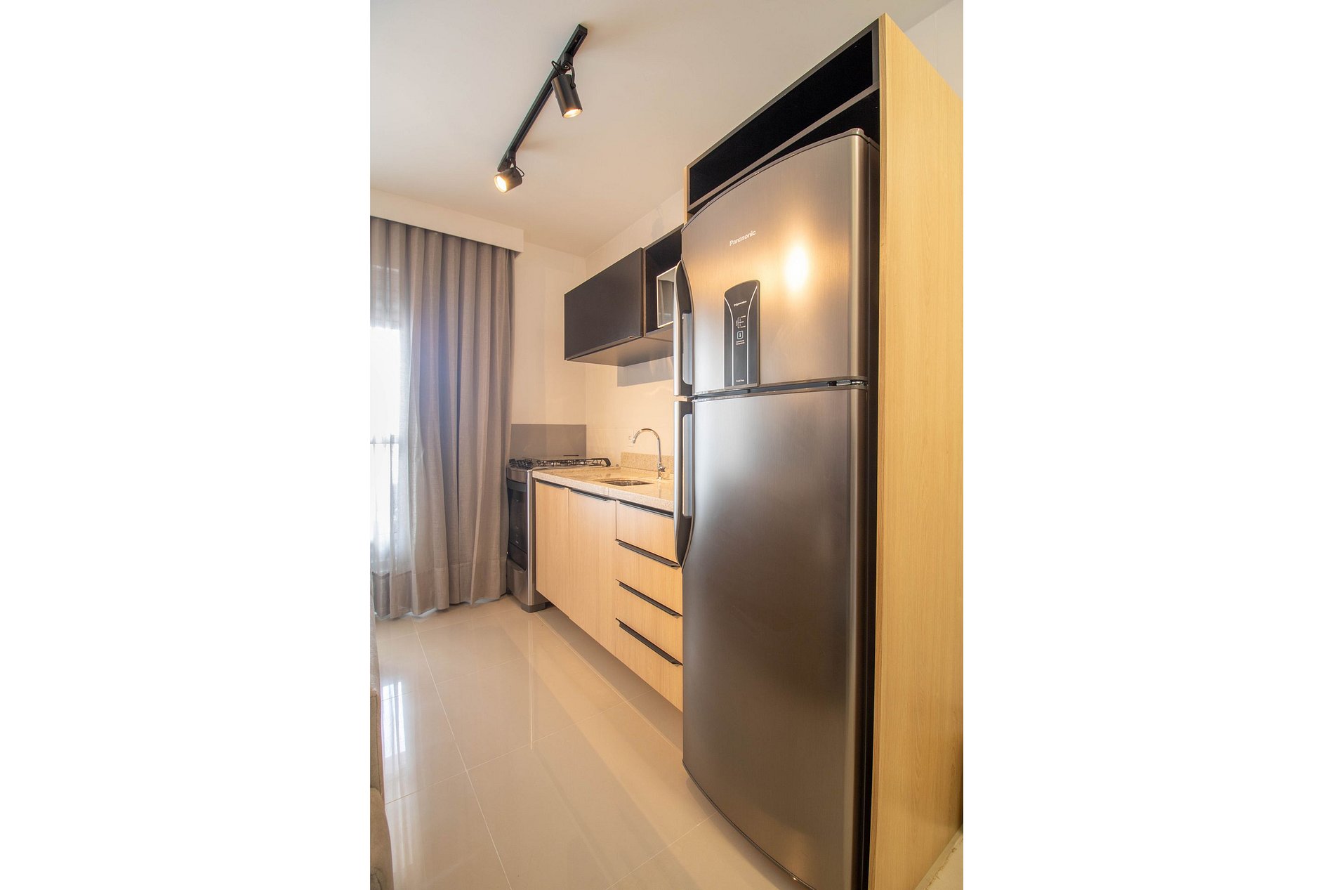 O apartamento de 1 quarto com varanda tem 45m² e é todo mobiliado, decorado e equipado. Você tem à disposição Wi-Fi, TV a cabo, toalhas, roupa de cama completa e cozinha com geladeira, cooktop, microondas e utensílios.