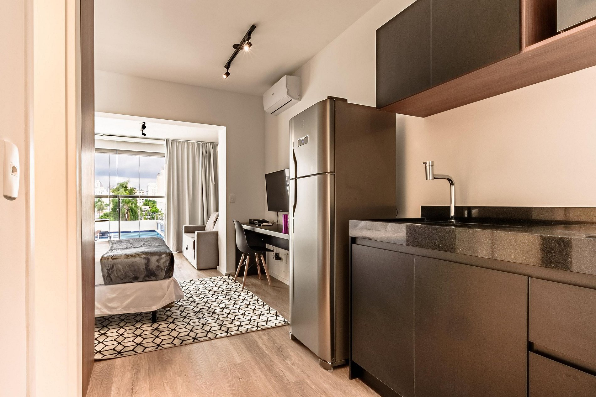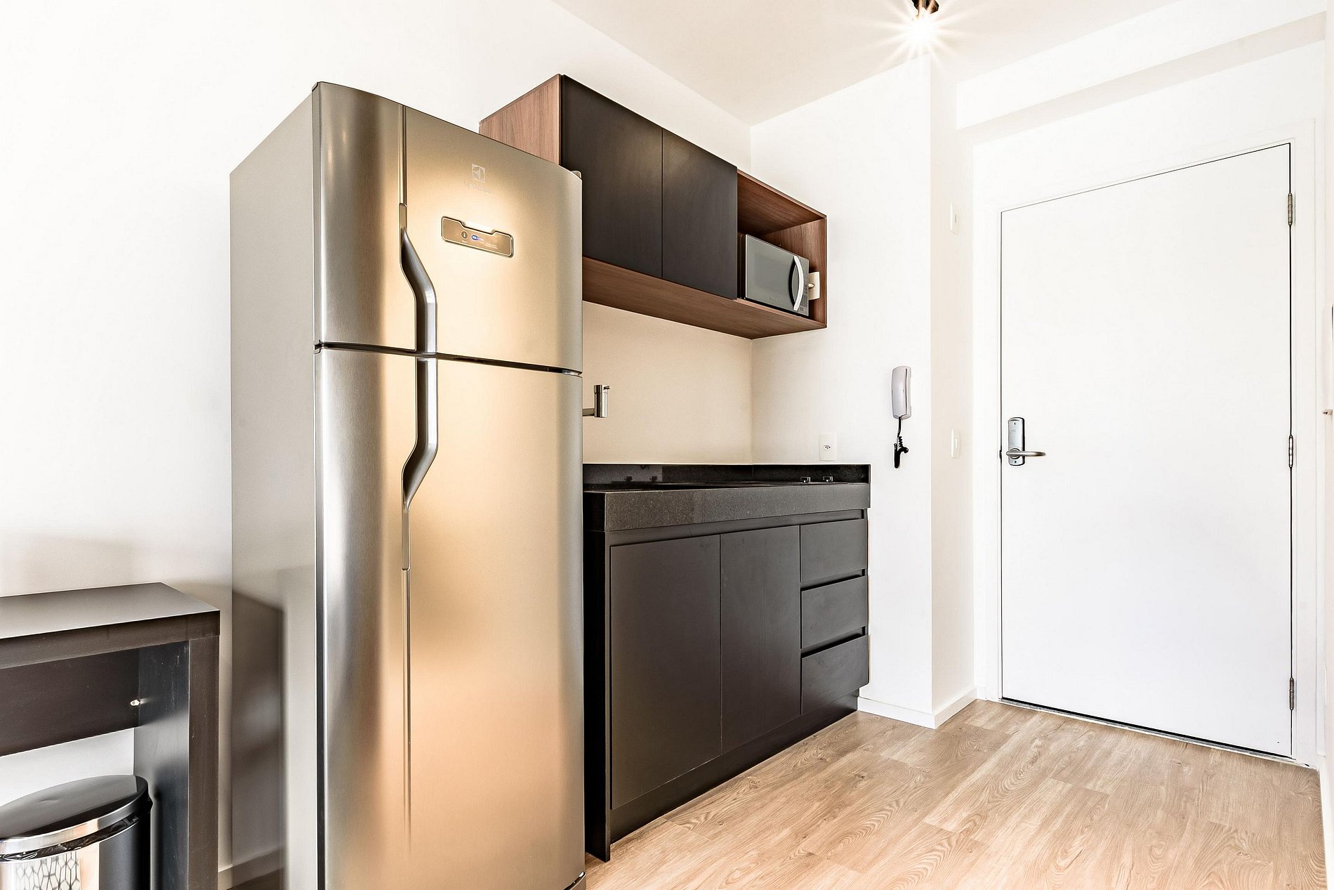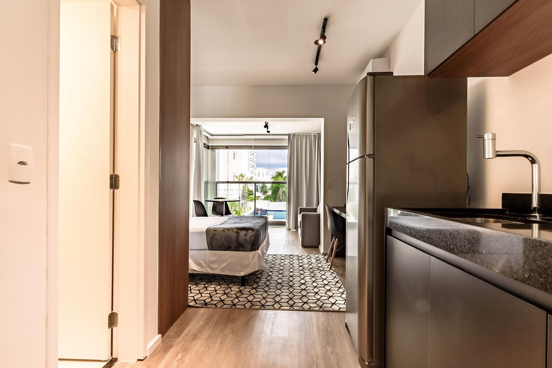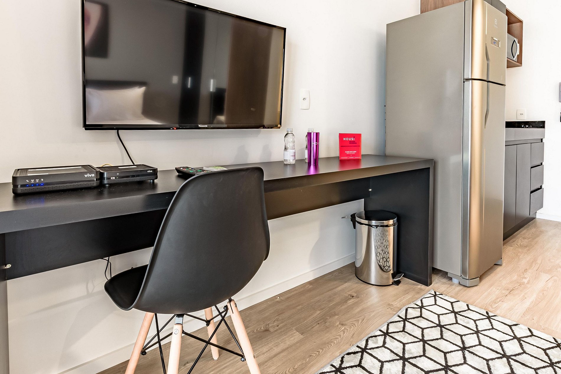 Os apês são todos mobiliados, decorados e equipados. Você tem à disposição Wi-Fi, TV a cabo, toalhas, roupa de cama completa e cozinha com geladeira, cooktop de indução de uma boca, microondas e utensílios. Escolha a sua e vem para Housi você também!