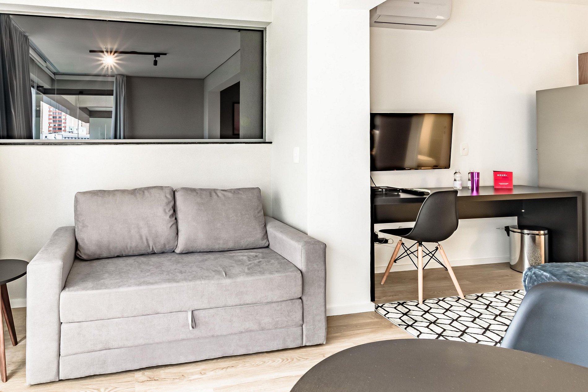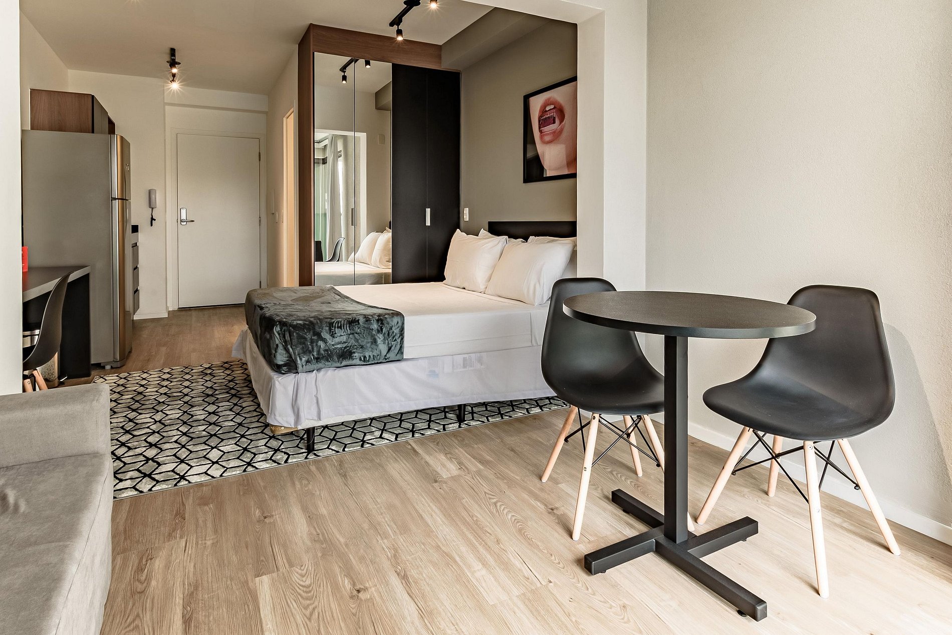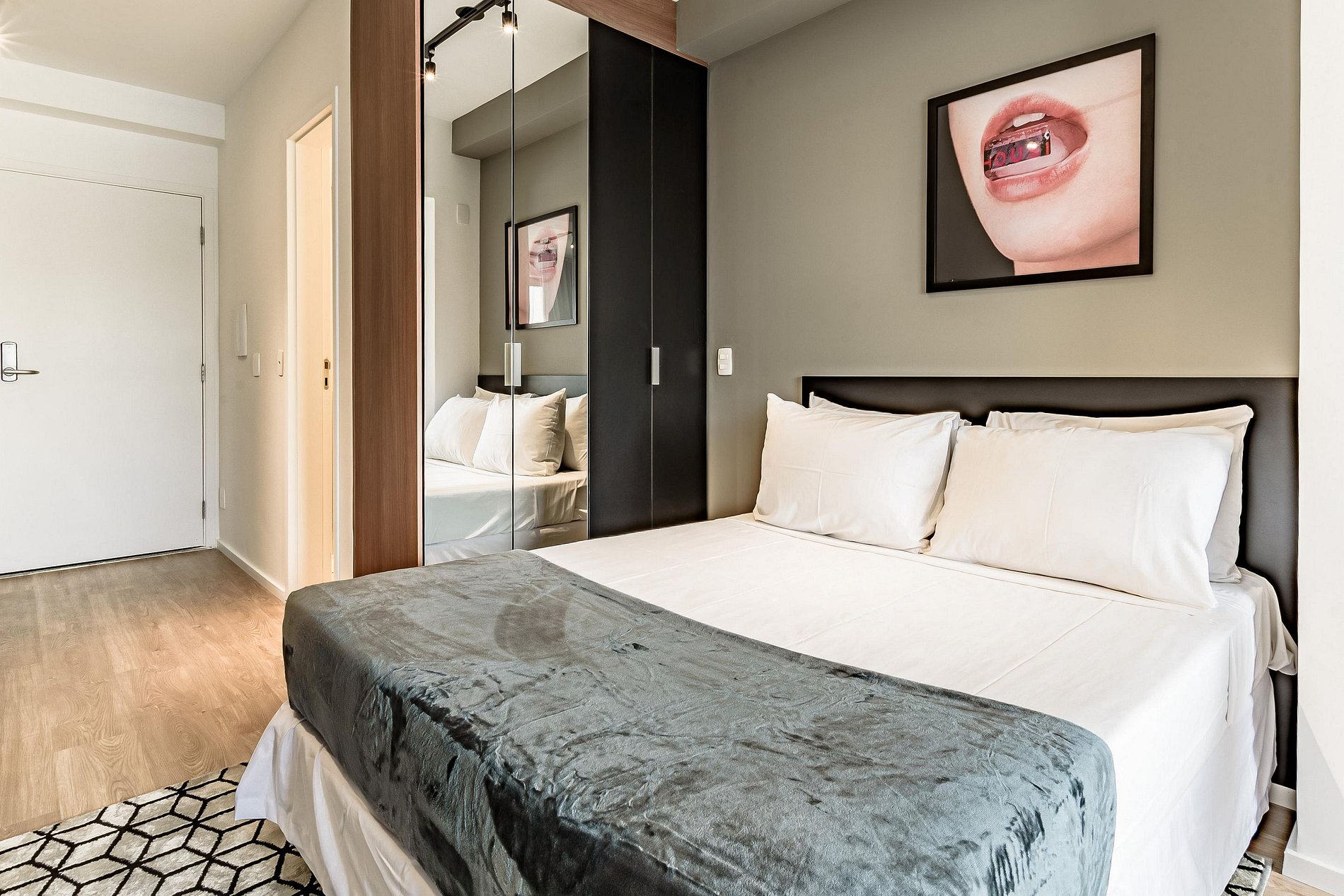 Os apês são todos mobiliados, decorados e equipados. Você tem à disposição Wi-Fi, TV a cabo, toalhas, roupa de cama completa e cozinha com geladeira, cooktop de indução de uma boca, microondas e utensílios. Escolha a sua e vem para Housi você também!