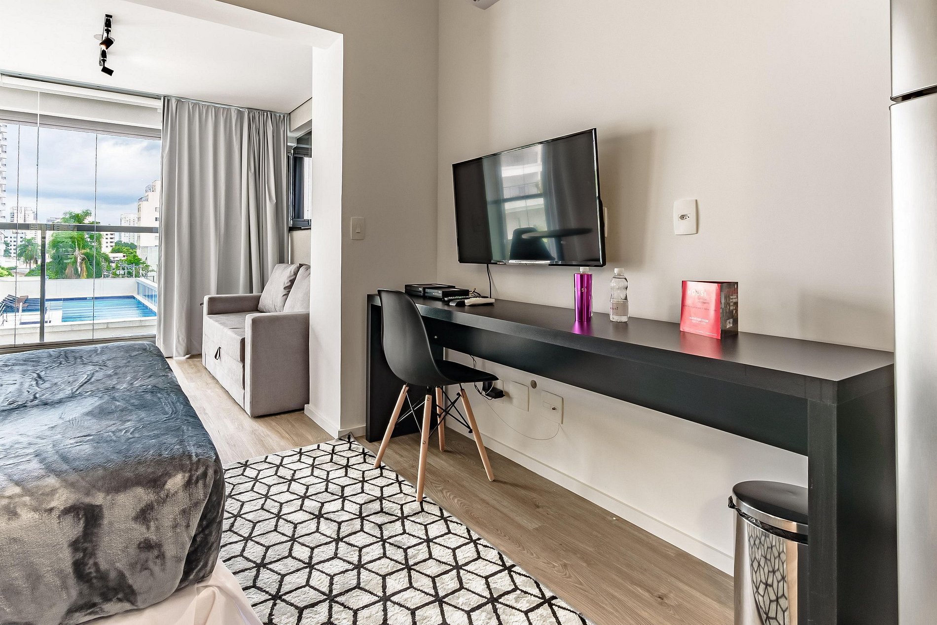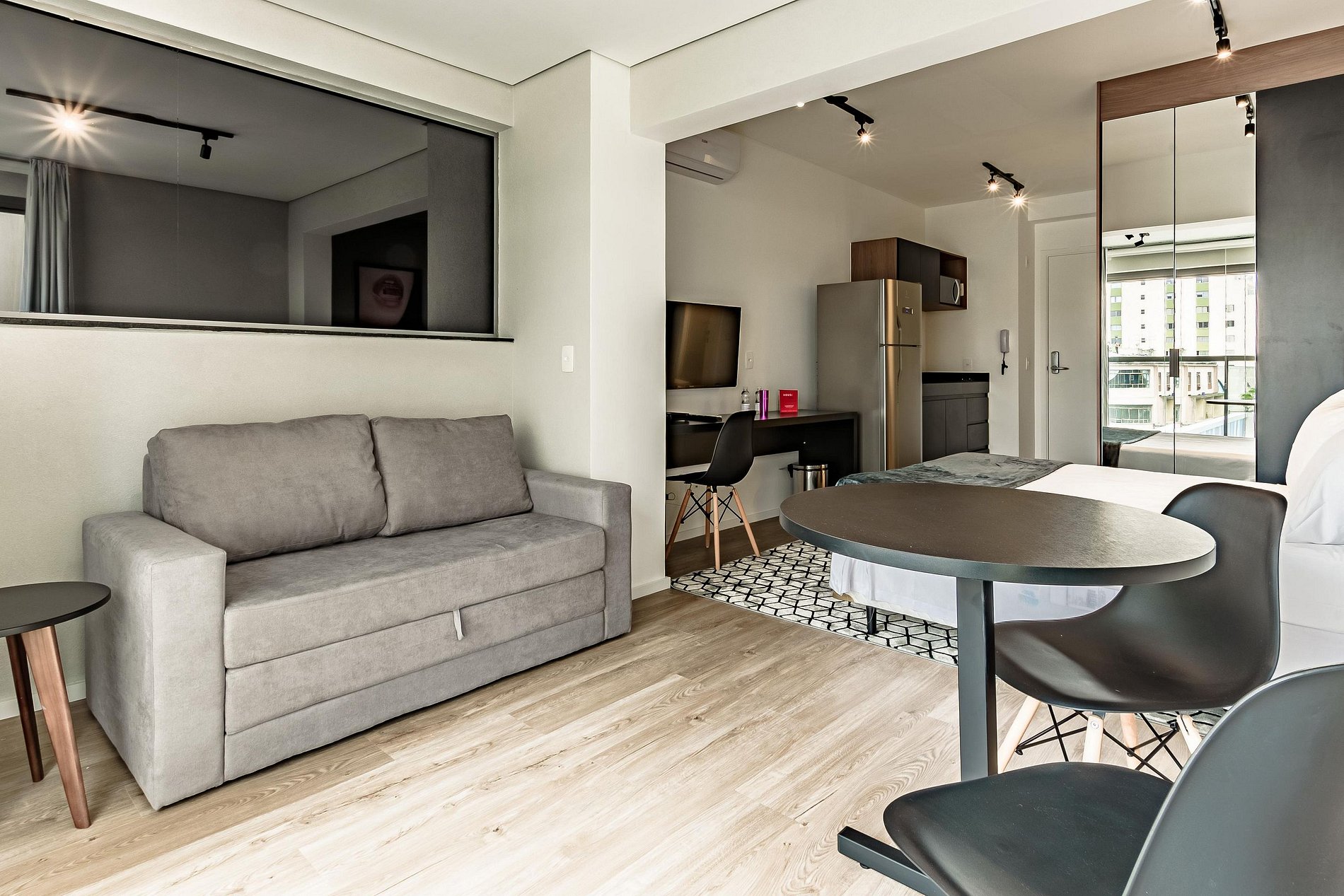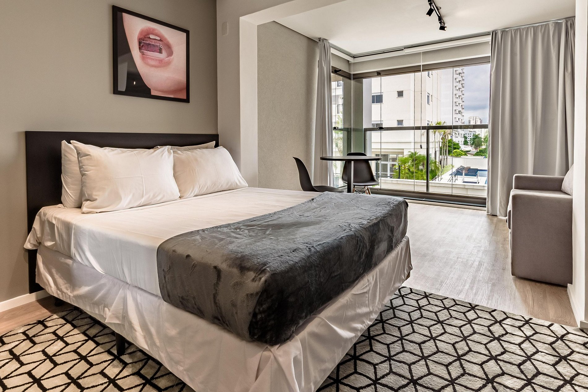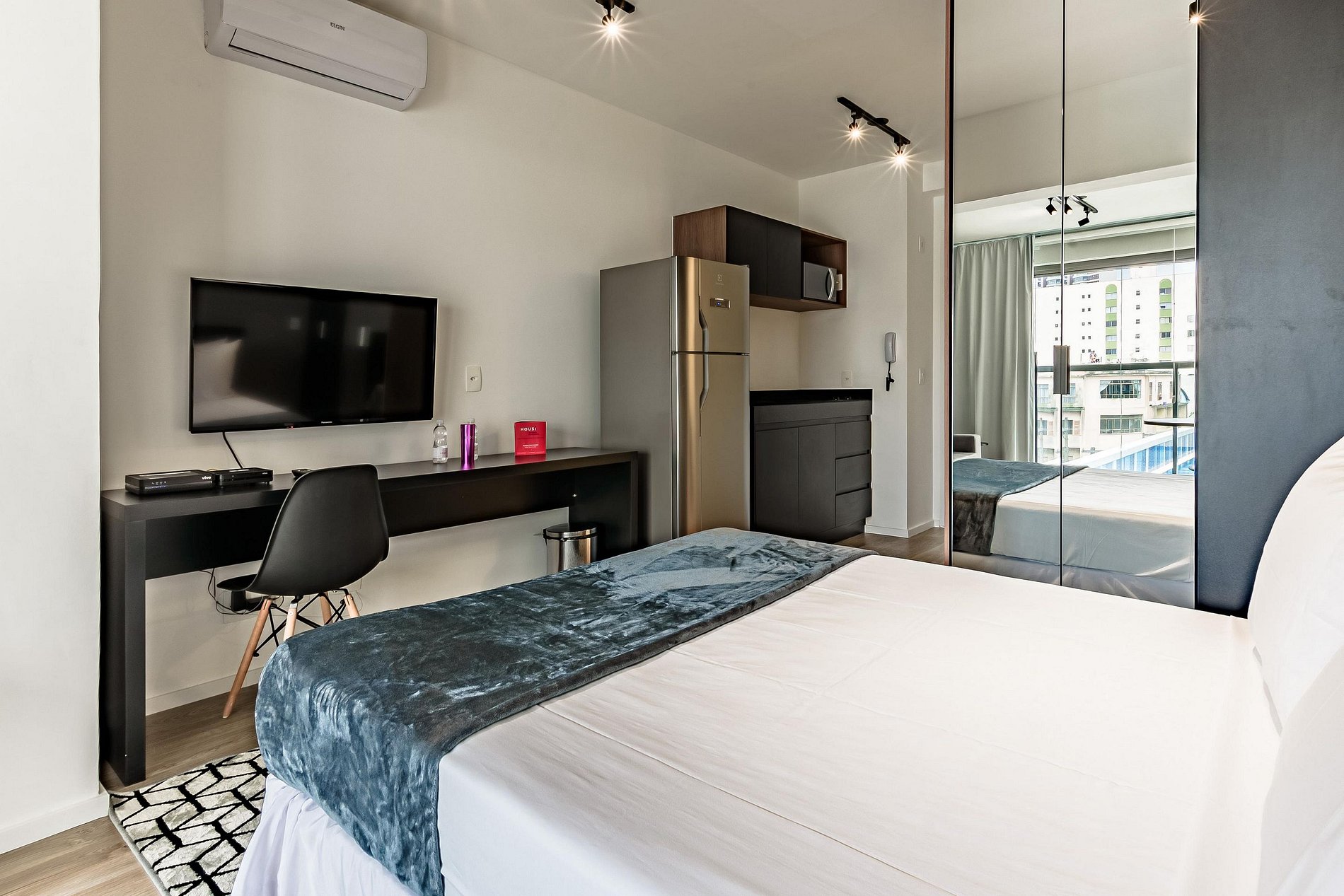 Os apês são todos mobiliados, decorados e equipados. Você tem à disposição Wi-Fi, TV a cabo, toalhas, roupa de cama completa e cozinha com geladeira, cooktop de indução de uma boca, microondas e utensílios. Escolha a sua e vem para Housi você também!