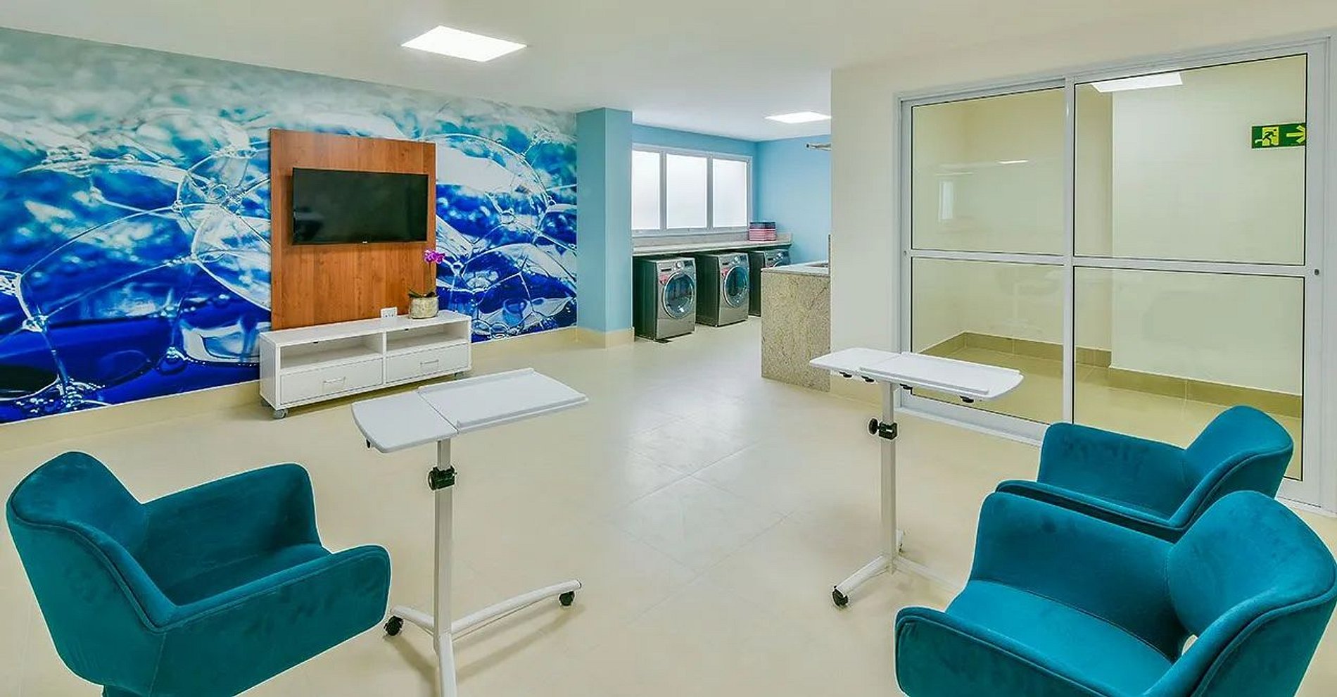 No empreendimento, você tem a sua disposição academia e piscina na cobertura, com uma vista inspiradora, lavanderia compartilhada, e várias outras comodidades e opções de lazer no próprio local, como sauna, sala de jogos e playground infantil.